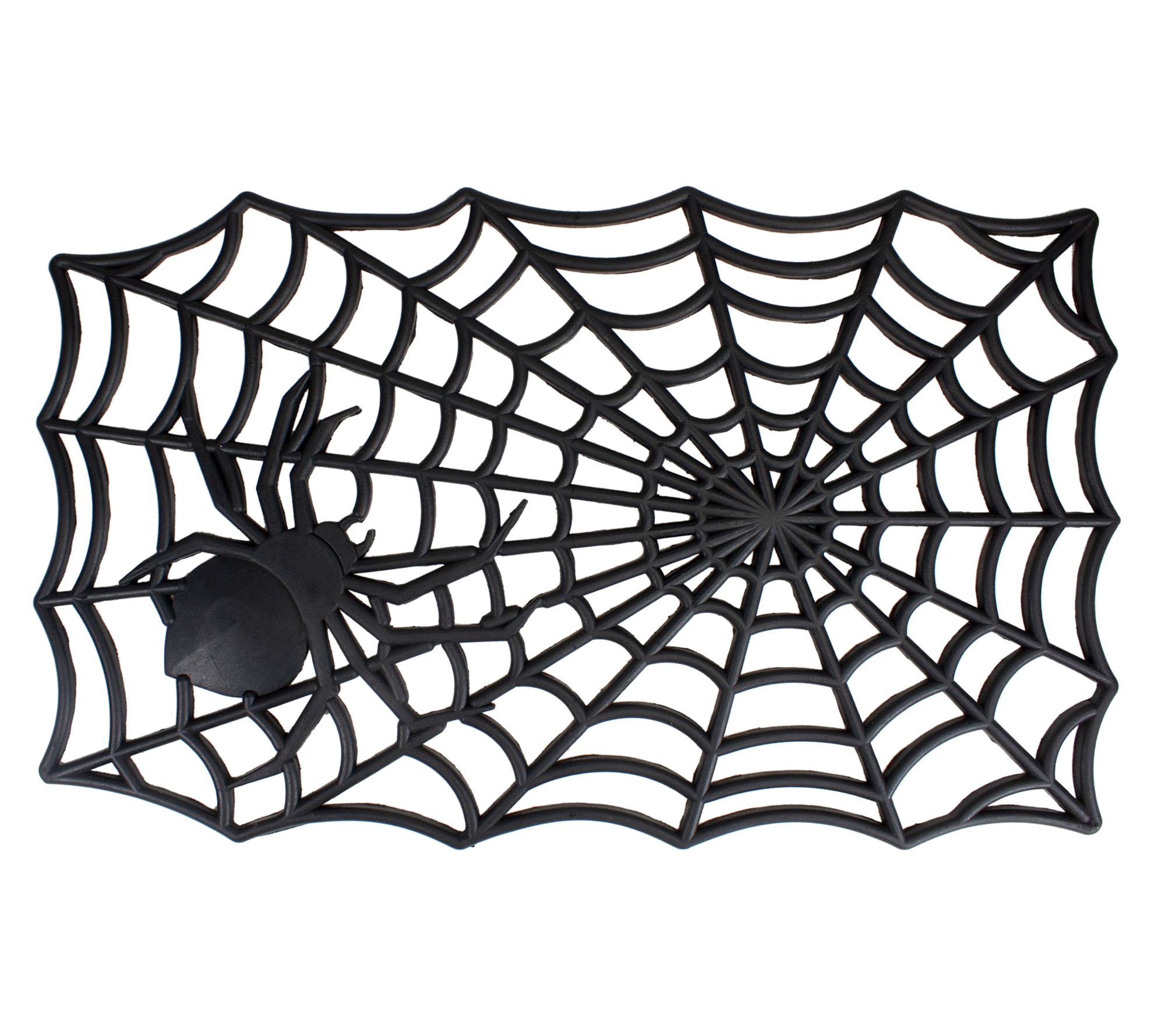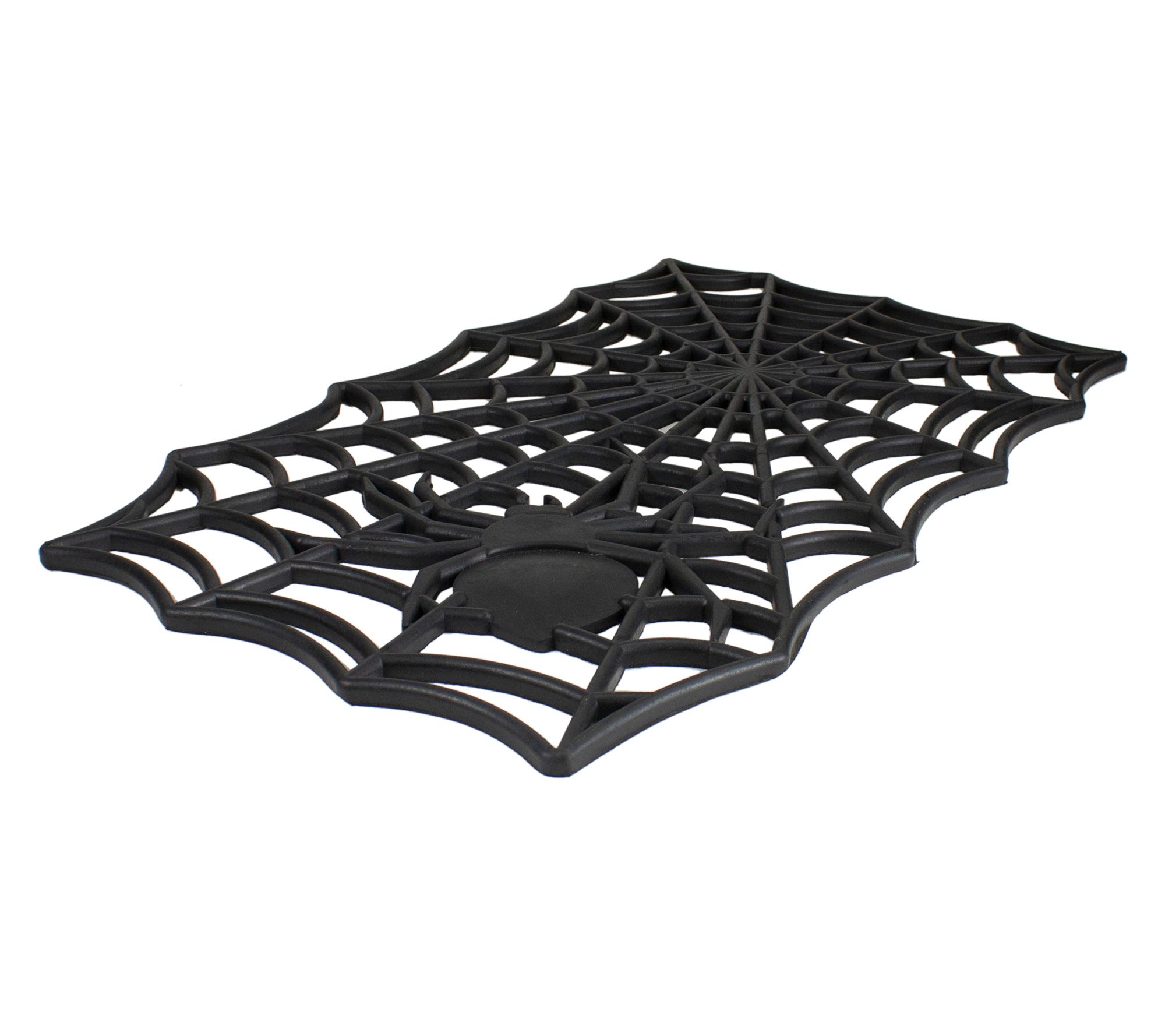 Welcome guests and trick-or-treaters with this Halloween doormat featuring a black spider and web design. The skid-resistant backing helps keep it in place, while the tough coir fiber and rubber construction handle outdoor use with ease -- all while helping your entryway stay cleaner. From Northlight.