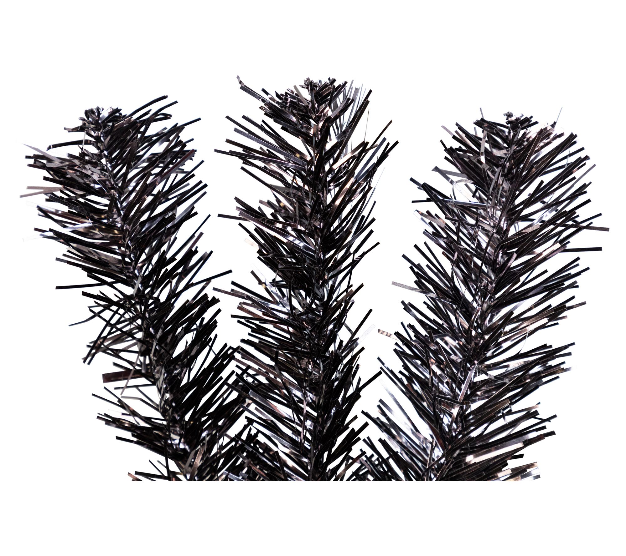 Make your next spooky gathering even more memorable with this striking black tinsel Halloween tree, ready to shine with your unique style. Whether used as the centerpiece for a haunting scene or as a festive accent in your living room, the shimmering tinsel branches provide the ideal backdrop for your favorite lights and decorations. Sturdy metal stand included for easy setup and versatility. From Northlight.
