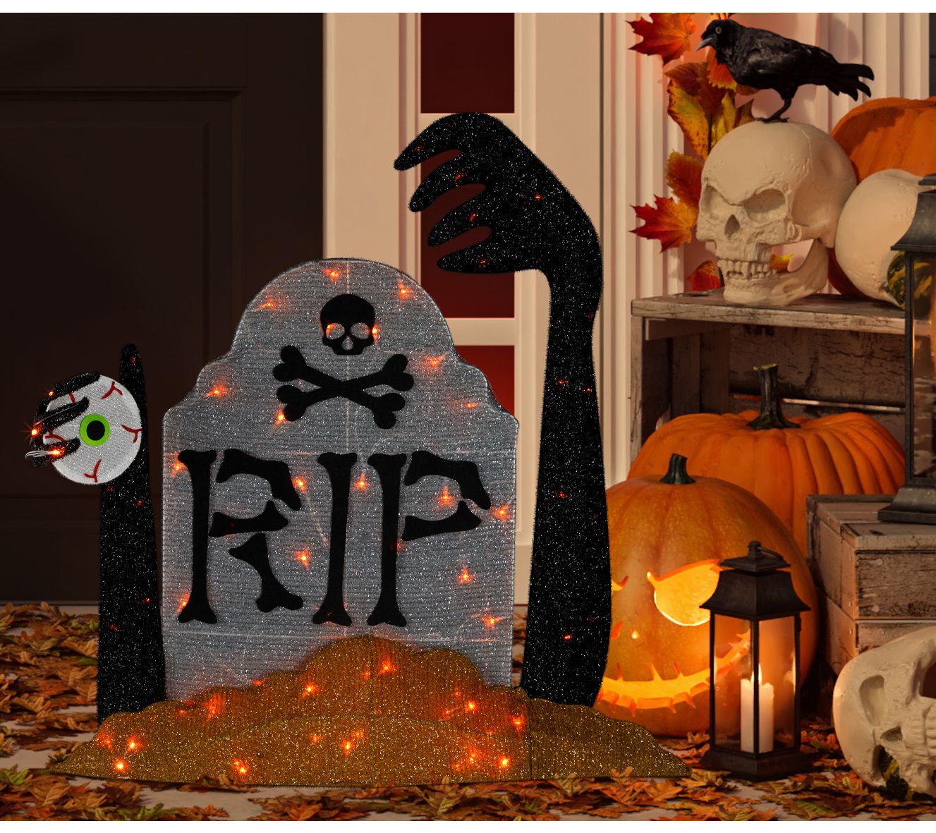 • Includes tombstone Halloween decor with LED lights