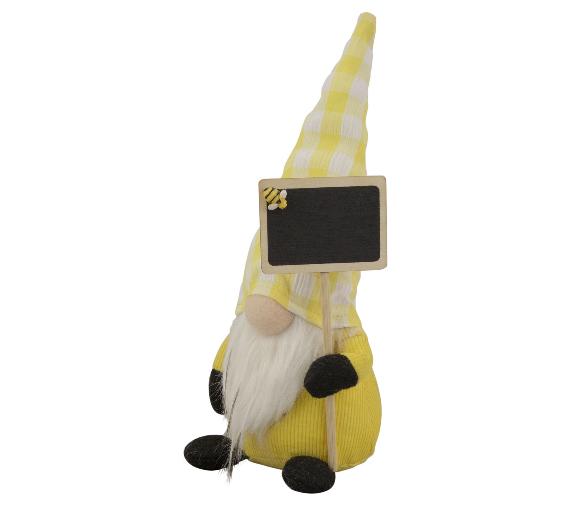 Northlight Yellow Gingham Hat Spring Gnome with Chalk Board