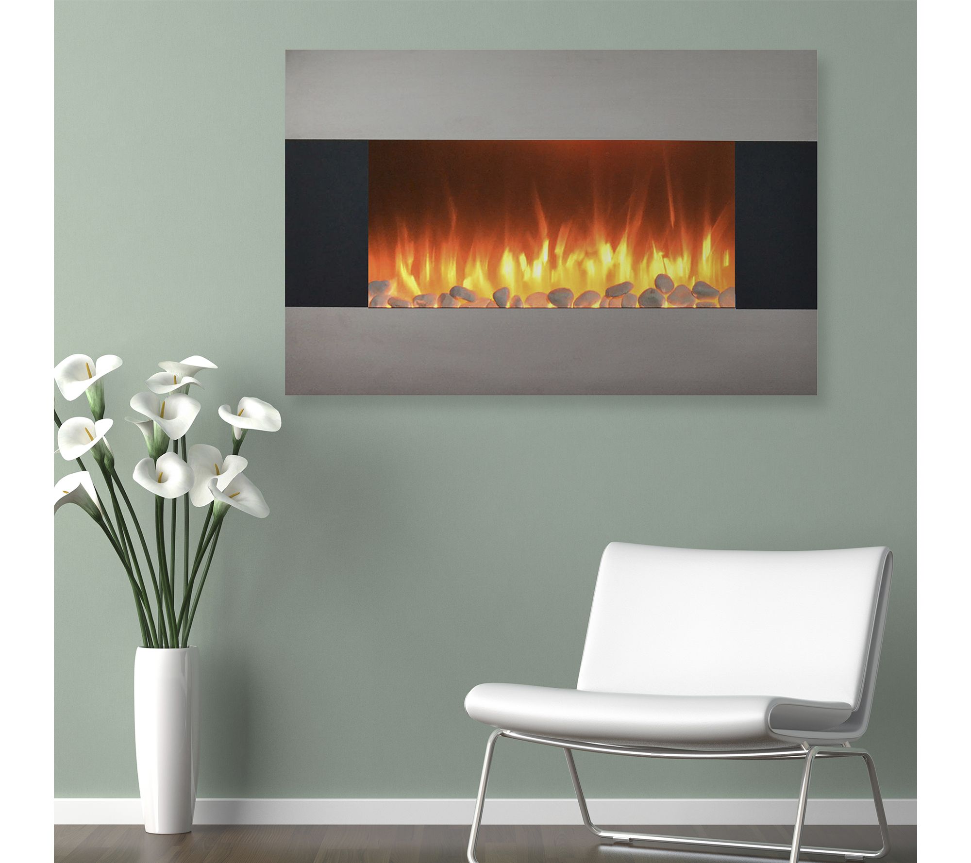 • Includes fireplace, wall mount, floor stand, remote control, and instructions