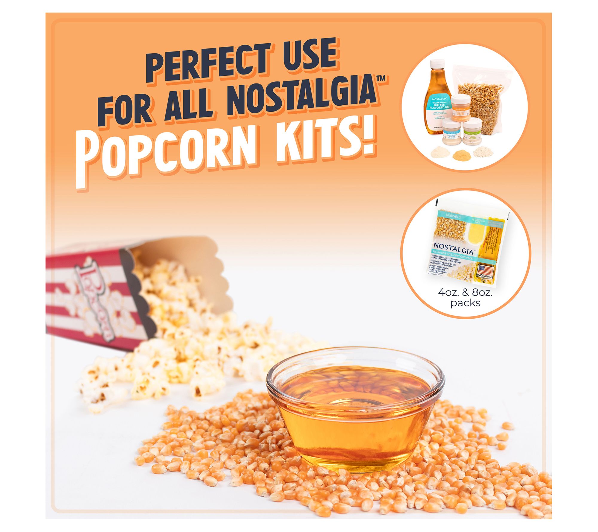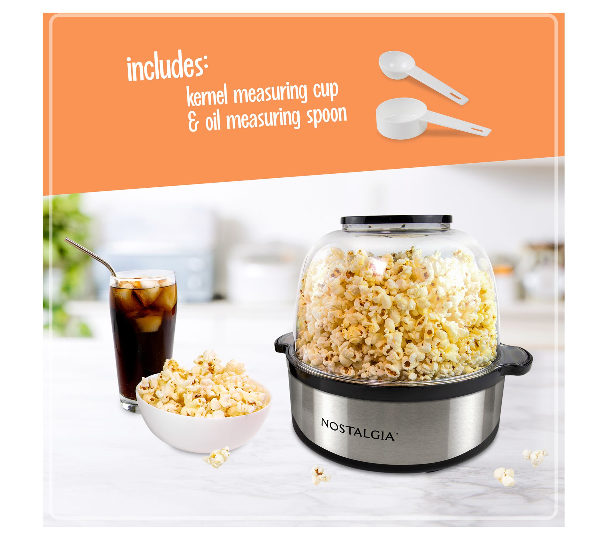 • Includes popcorn maker, serving bowl/lid, measuring cup, and oil spoon
