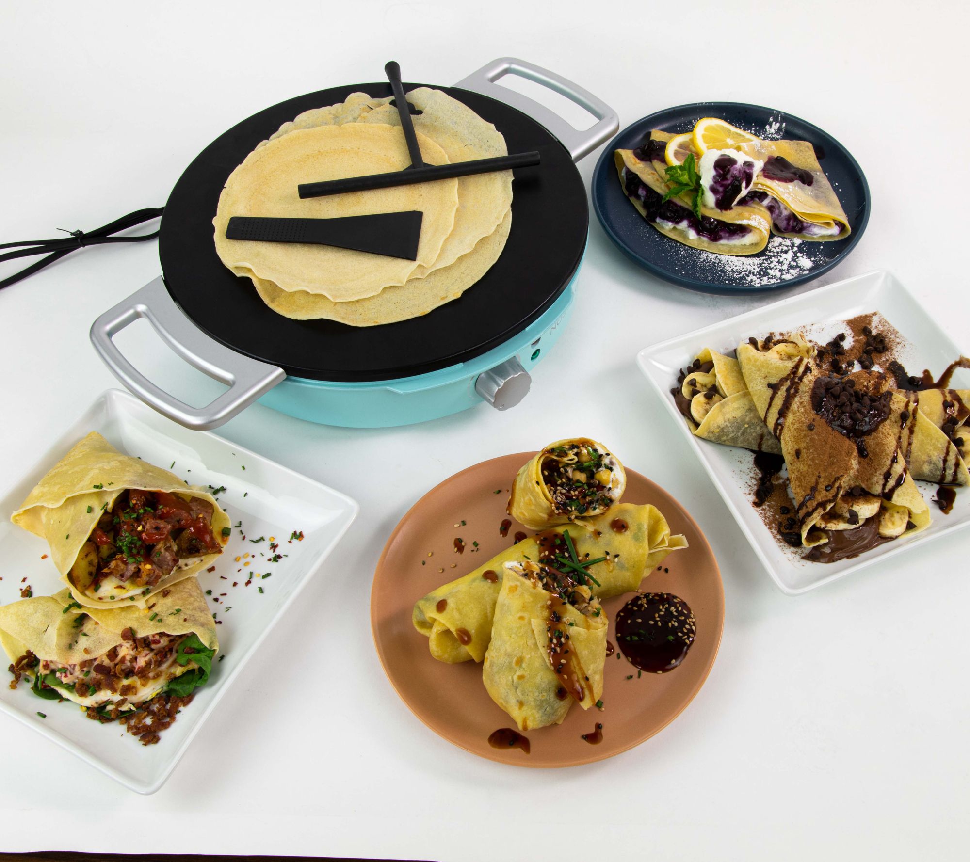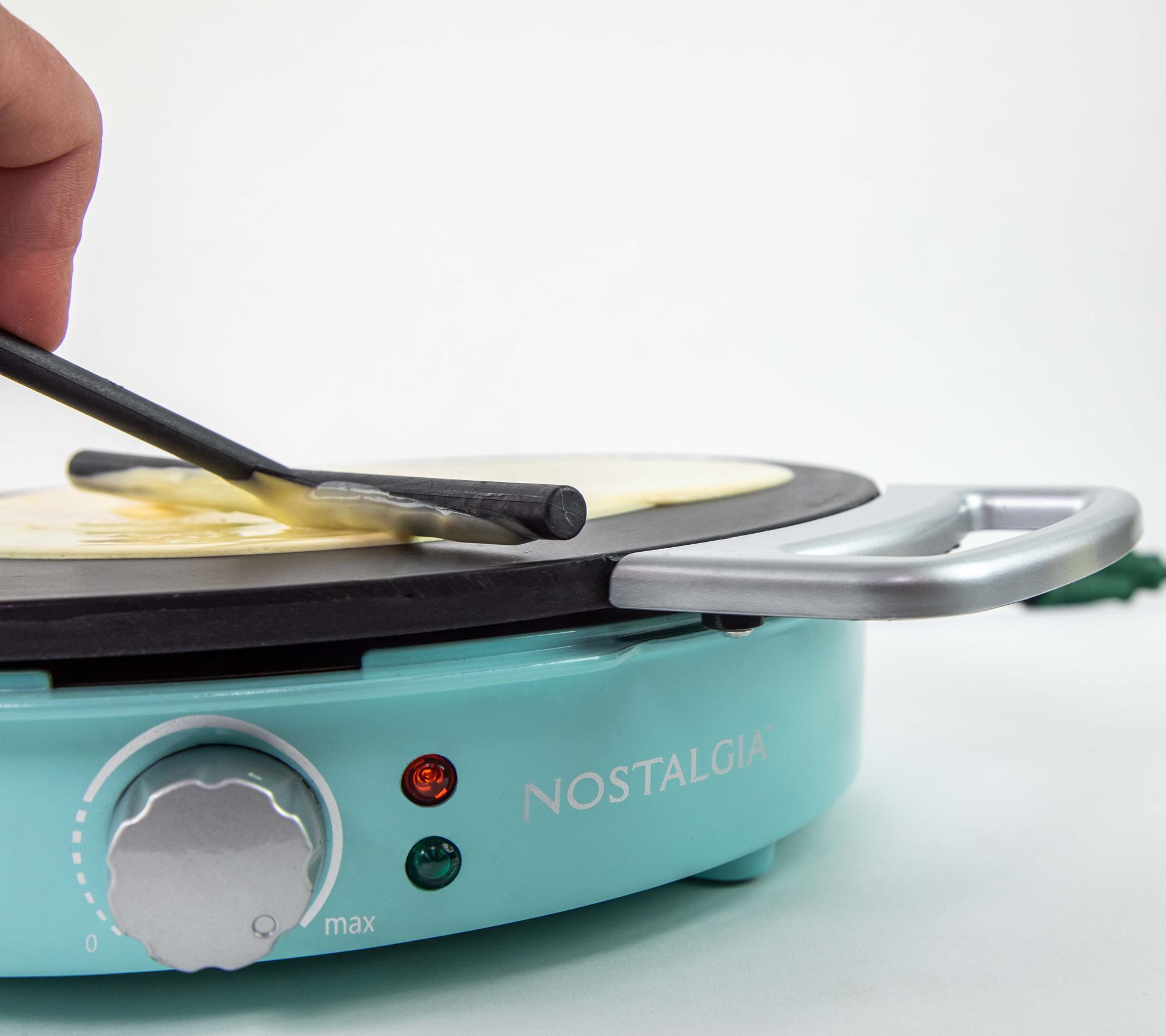 Bake up flaky and savory delights with this spinning crepe maker boasting a sleek nonstick surface that cleans up in a flash. From Nostalgia.