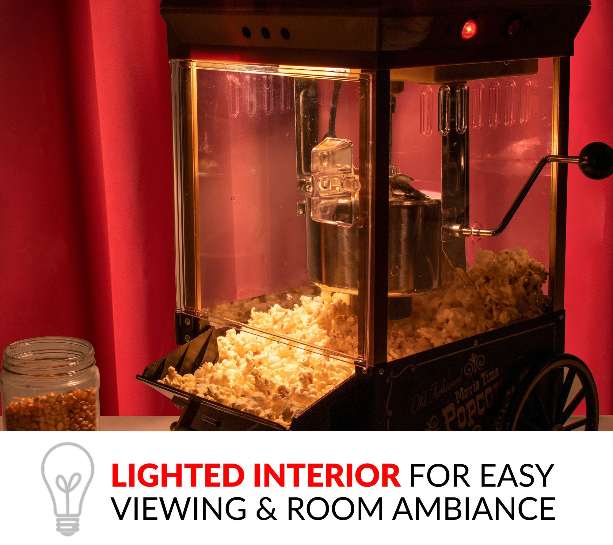 Enjoy old-fashioned popcorn for movie nights and snacks with this charming, vintage-inspired popcorn maker. Watch as the interior fills with popcorn and then you can empty it effortlessly from the tilted door, right into your bowl. From Nostalgia.