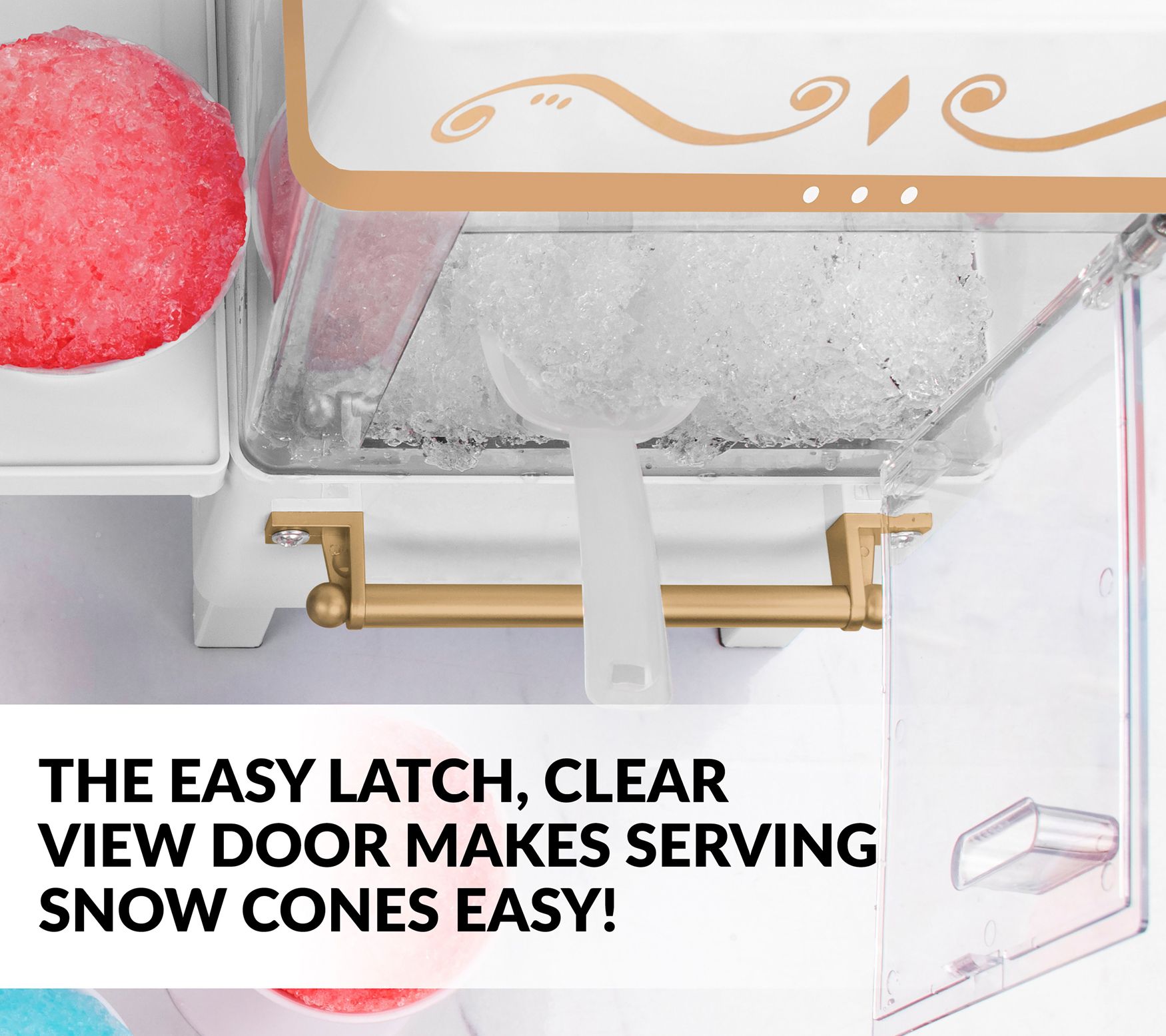 • Includes NSCM525WH snow cone maker, two 8-oz reusable plastic snow cones, and ice scoop