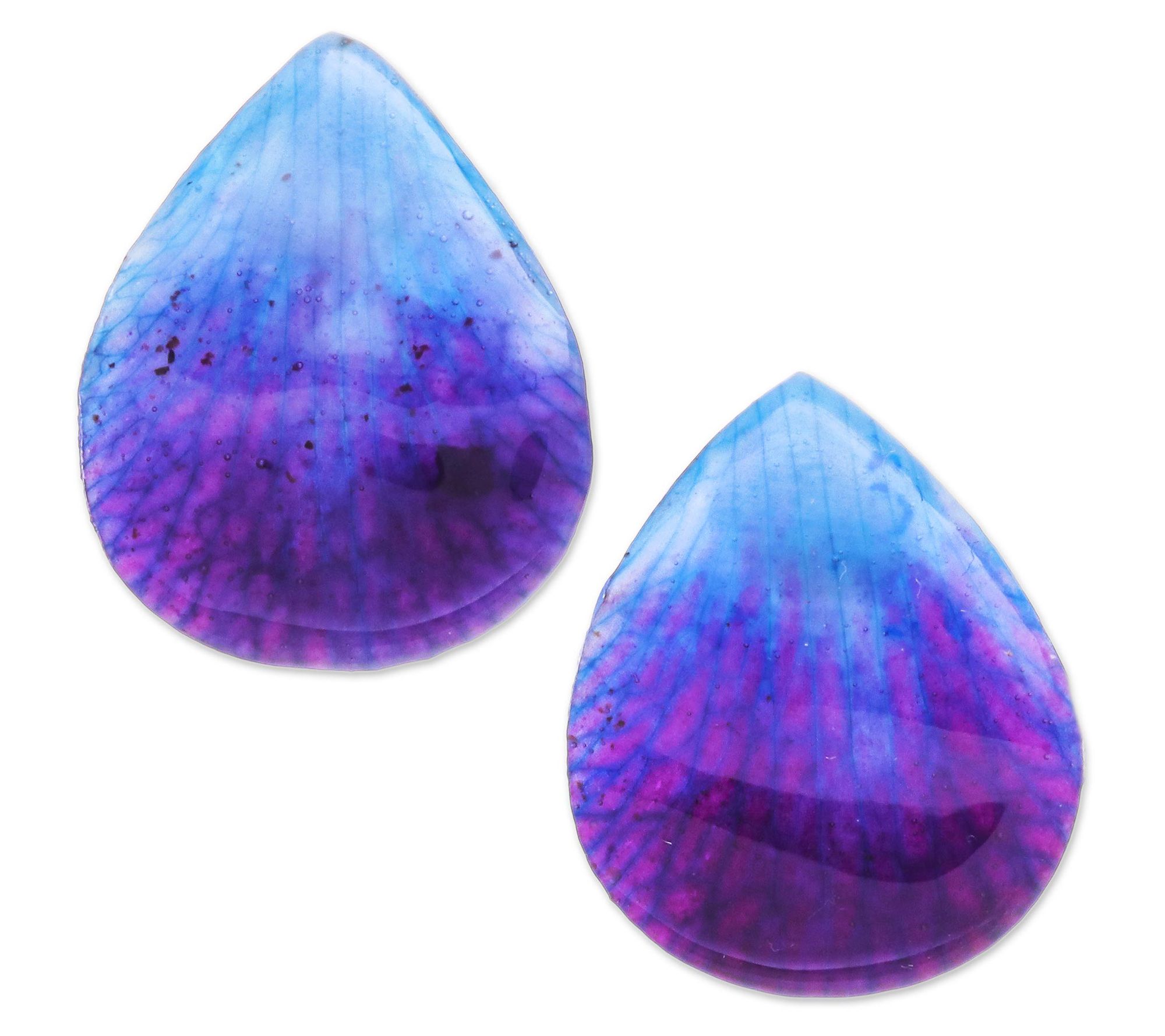 Truly unique, these button earrings are made with real blue orchid petals to bring the beauty of nature to your ensembles. From Novica.