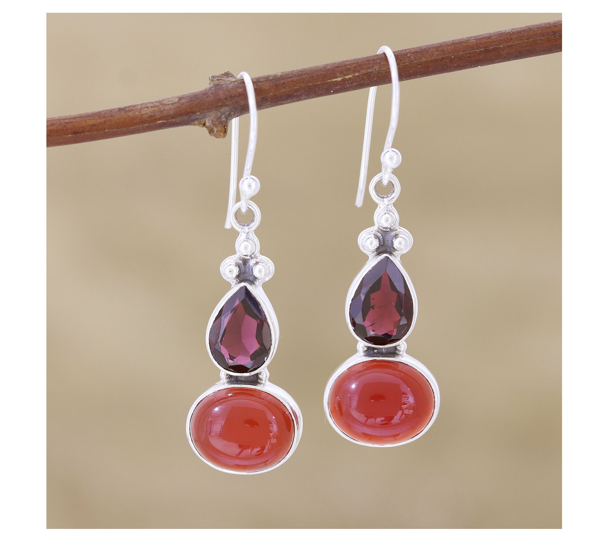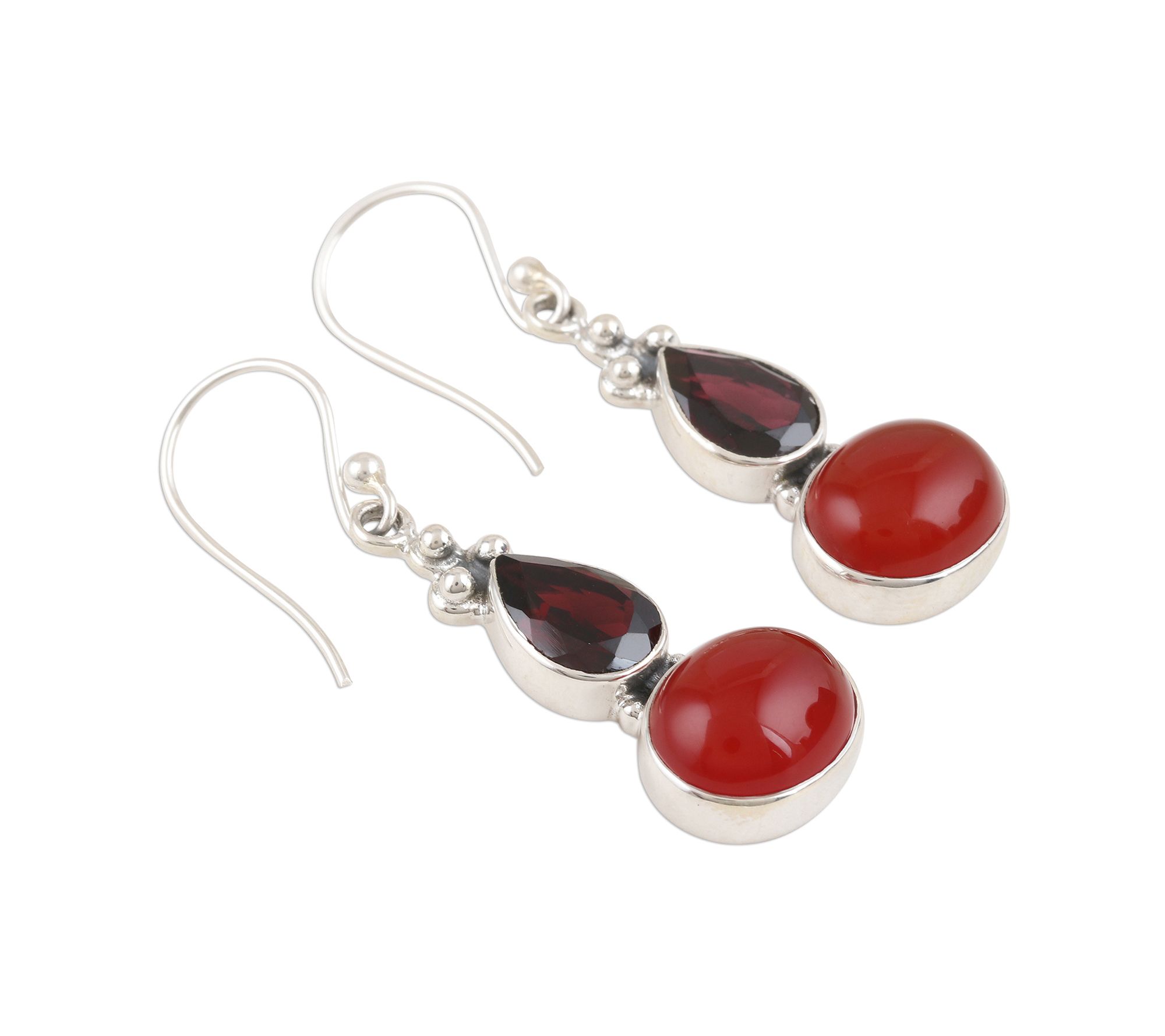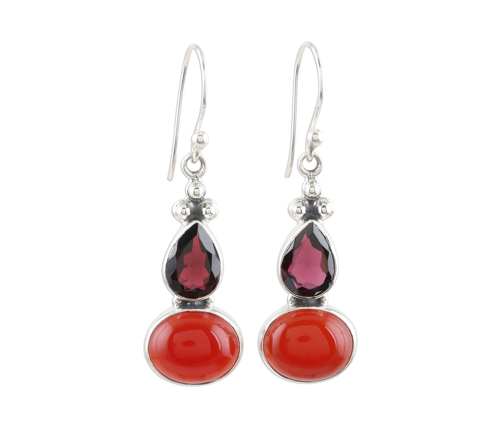 Gorgeous in shades of red and destined to become your go-to accessories, these bezel-set gemstone beauts dangle from a trio of tiny sterling silver beads and swing freely from silver shepherd's hooks. From Novica.