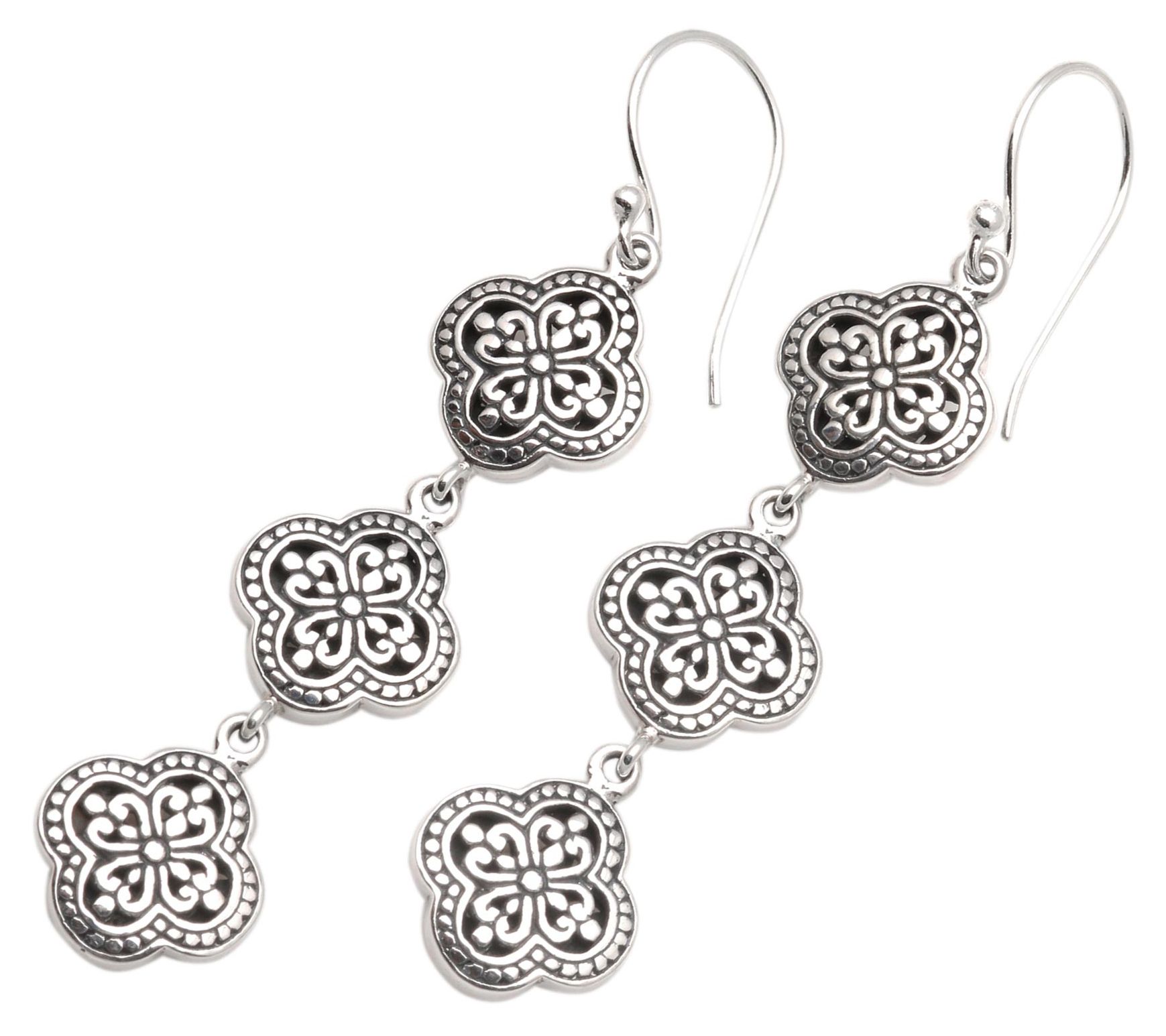 Novica Artisan-Crafted Sterling Silver Flower Dangle Earrings