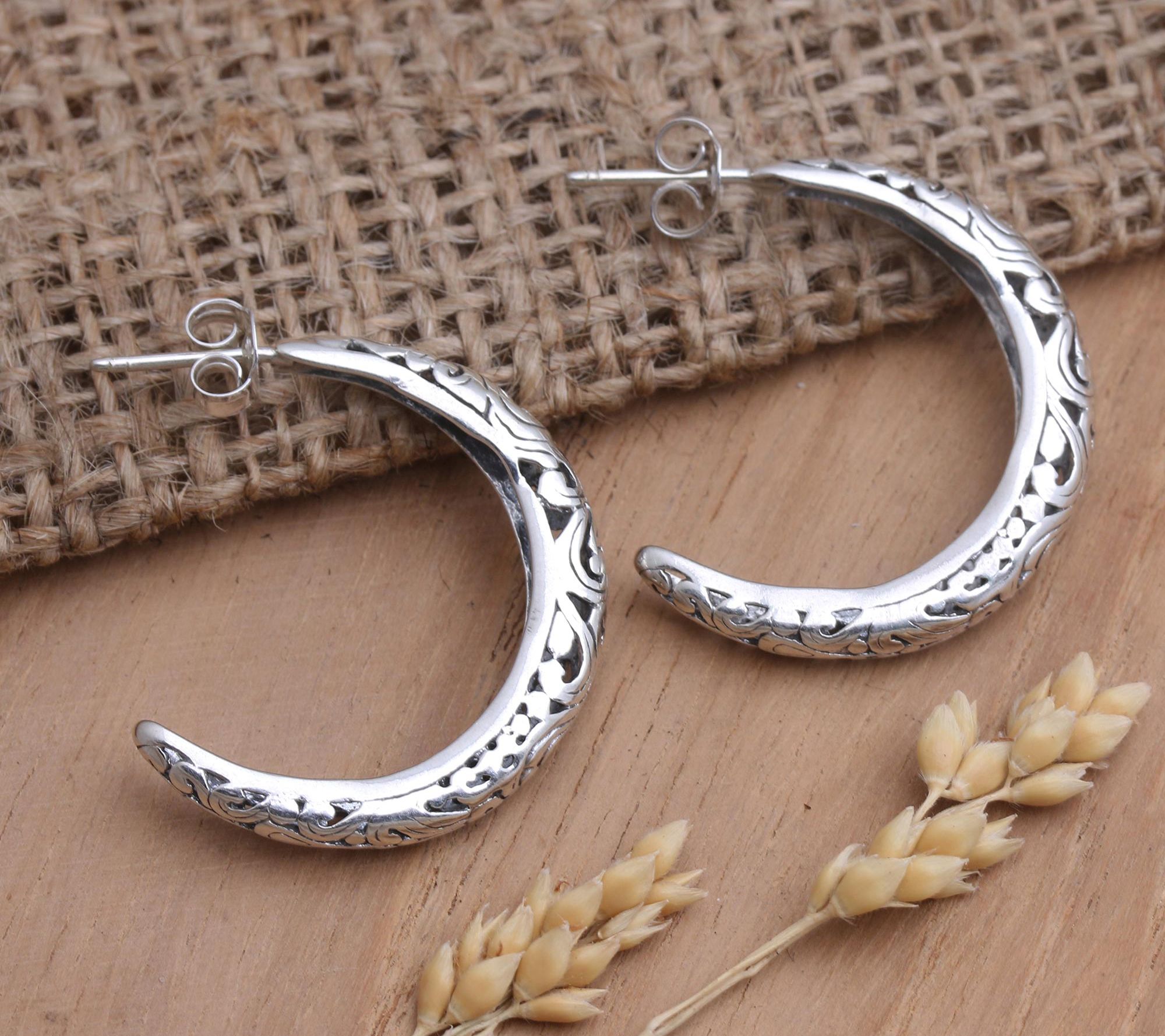Novica Artisan-Crafted Sterling-Silver Half-Hoop Earrings
