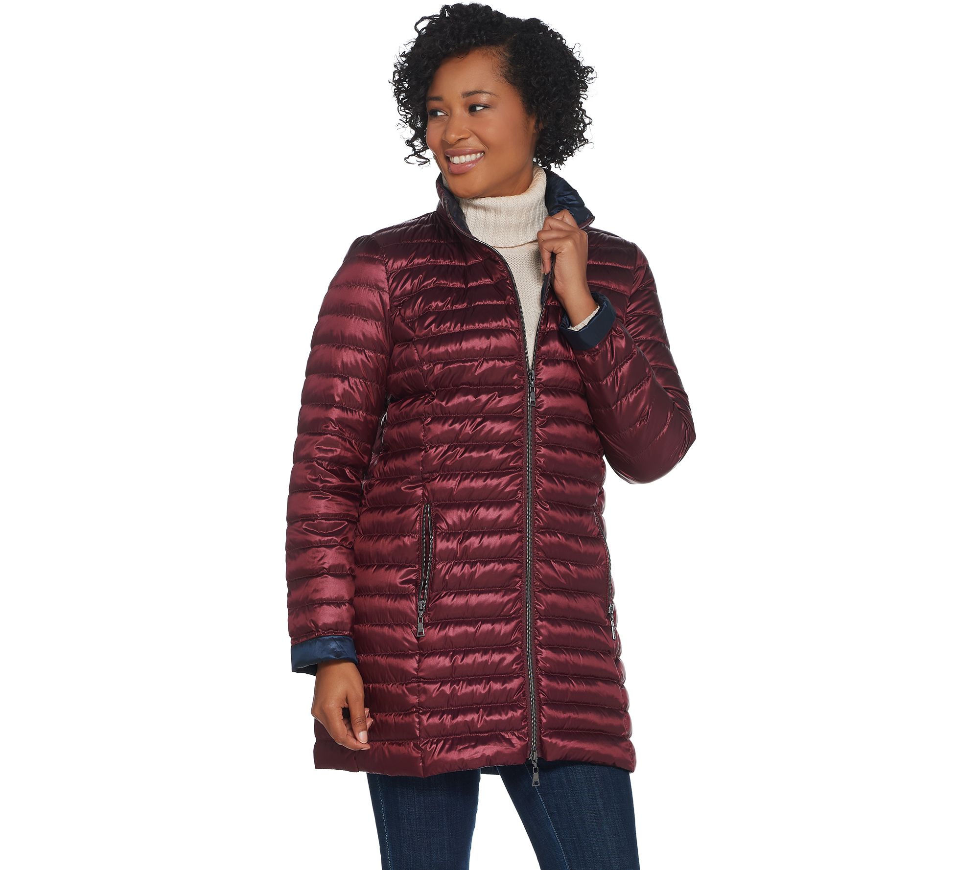 Hardware: two-way front-zip closure, two front vertical zippers