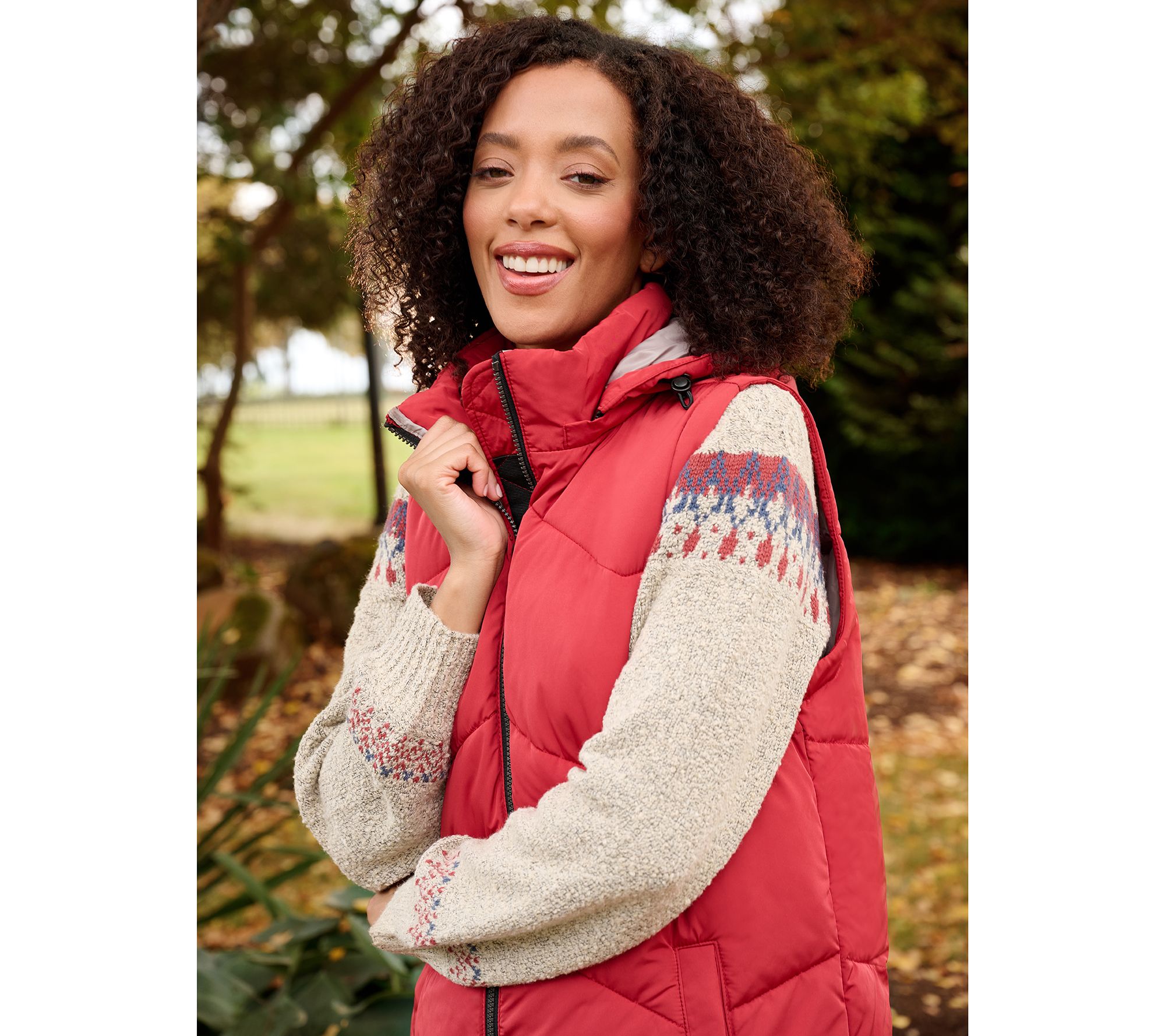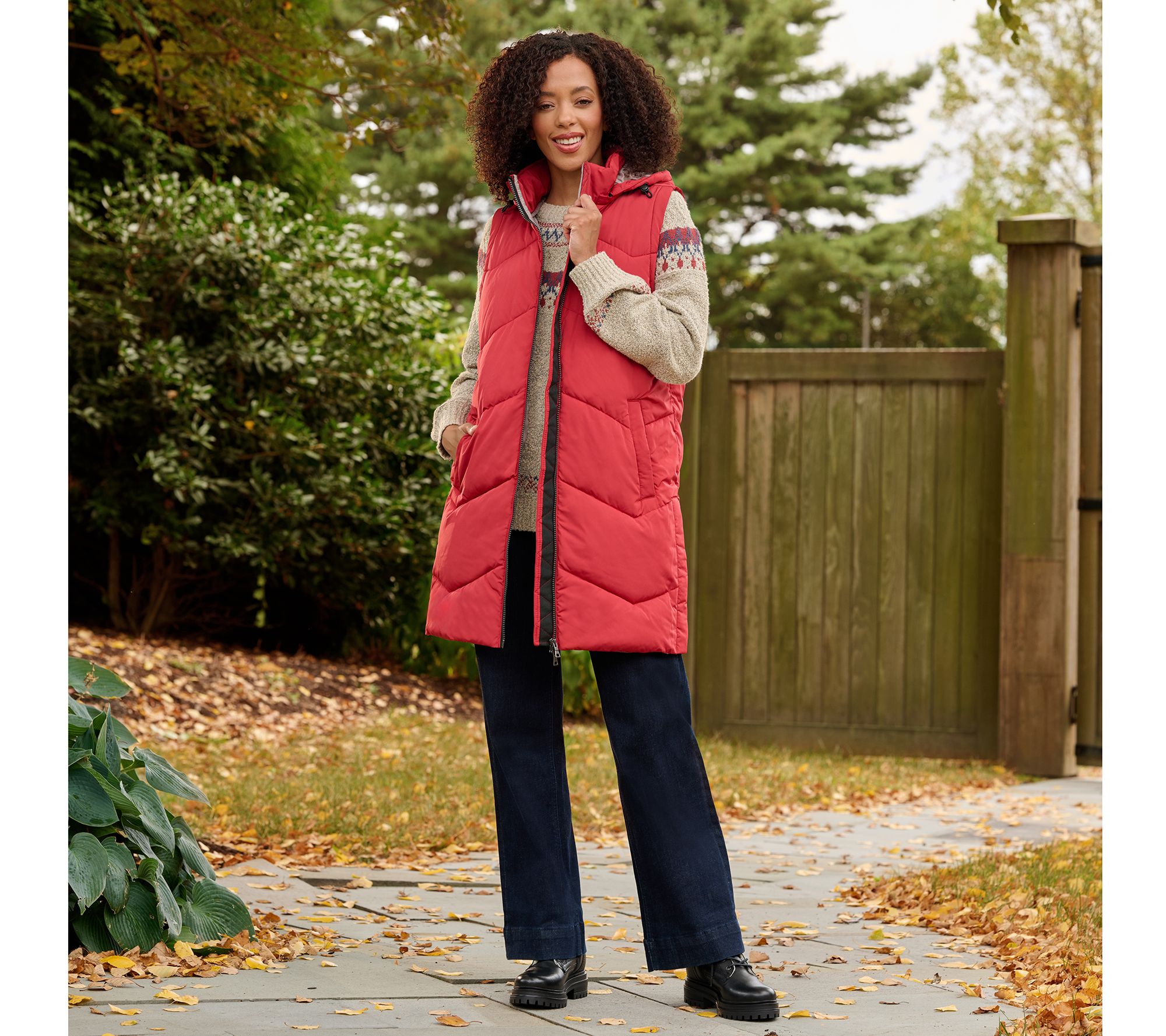 Cozy, comfortable, and cute... you'll say "yes" to this puffer vest from Nuage as the season's most sought-after layer. Show off its chic chevron-quilted design as you wear it for fall's outdoor activities like football games and apple picking. And because it keeps your core warm and toasty (and your arms free to take on any task), it carries you through winter as you're dashing through the snow to gather holiday gifts.