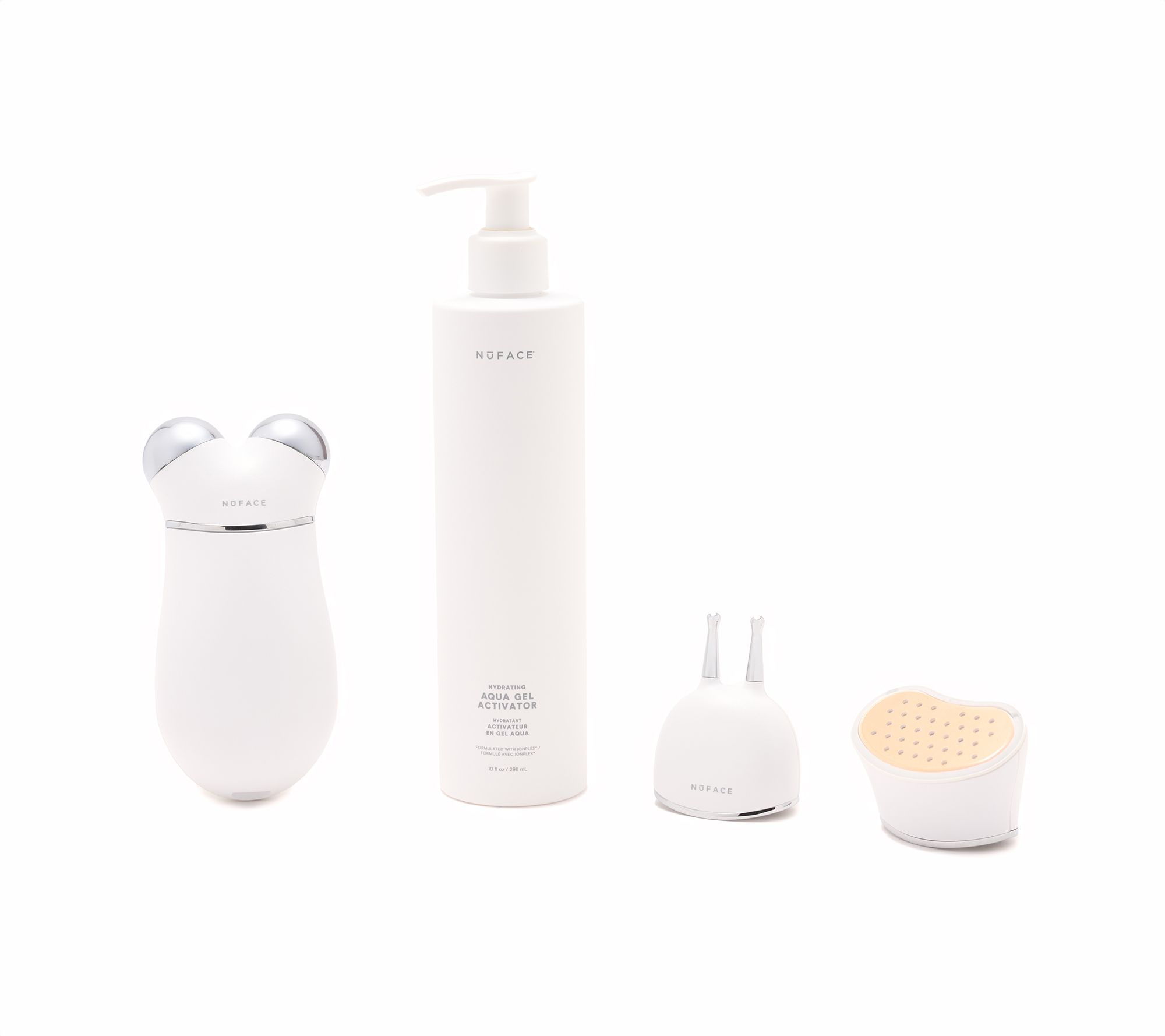 Put your best face forward with this Trinity+ Facial Toning Device Complete Set. The Trinity+ device has three modes that use microcurrent technology, while the Boost function provides an extra level of microcurrent energy. Plus, this set includes the ELE+ attachment (that provides an instant visible lift), TWR+ attachment (that uses a precise combination of red and infrared lights designed to help reduce the appearance of wrinkles around the mouth, eyes, and forehead.), and 10-oz Aqua gel. And thanks to this Auto-Delivery plan, you'll receive future shipments of Aqua gel approximately every 90 days for one year. From NuFace.