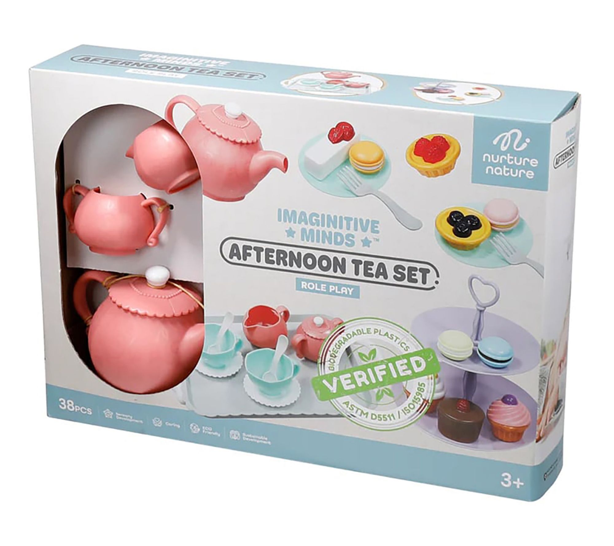 Step into a world of imaginative play with the Imaginative Minds Afternoon Tea Set. Perfect for children aged three and up, this 25-piece set lets kids host delightful pretend tea parties, serving tea from a stylish pink teapot and tasty play desserts on a two-tiered stand. Whether indoors or outdoors, your child will enjoy hours of creative fun. From NurtureNature Limited.