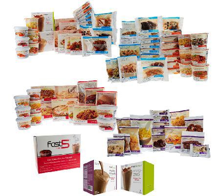 • First shipment: includes seven Fast Five breakfasts, seven Fast Five lunches, seven Fast Five dinners, seven EnergiZing Shakes, seven NutriCrush Shakes, plus three full weeks of Nutrisystem with weekends off; an additional 15 breakfast, lunches, dinners and snacks