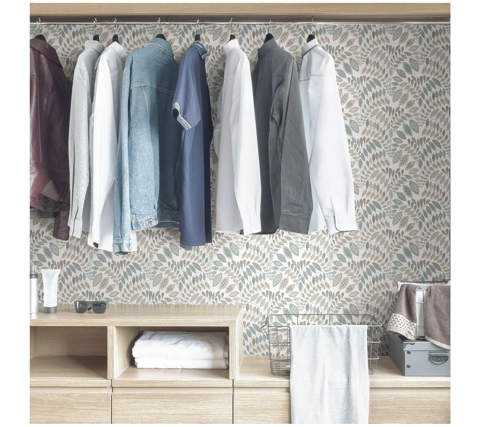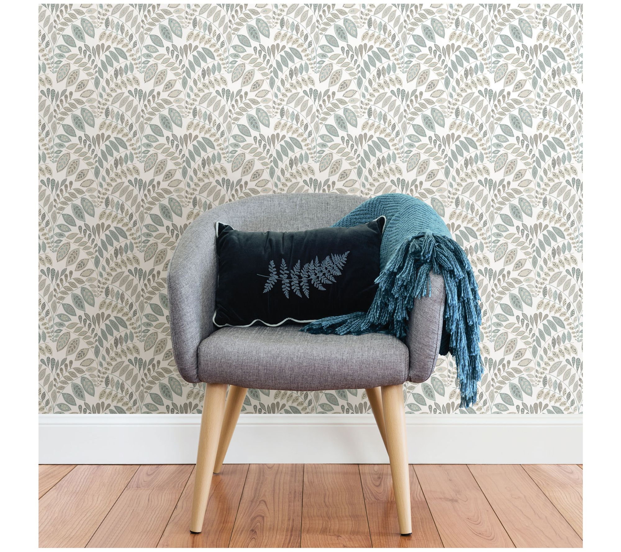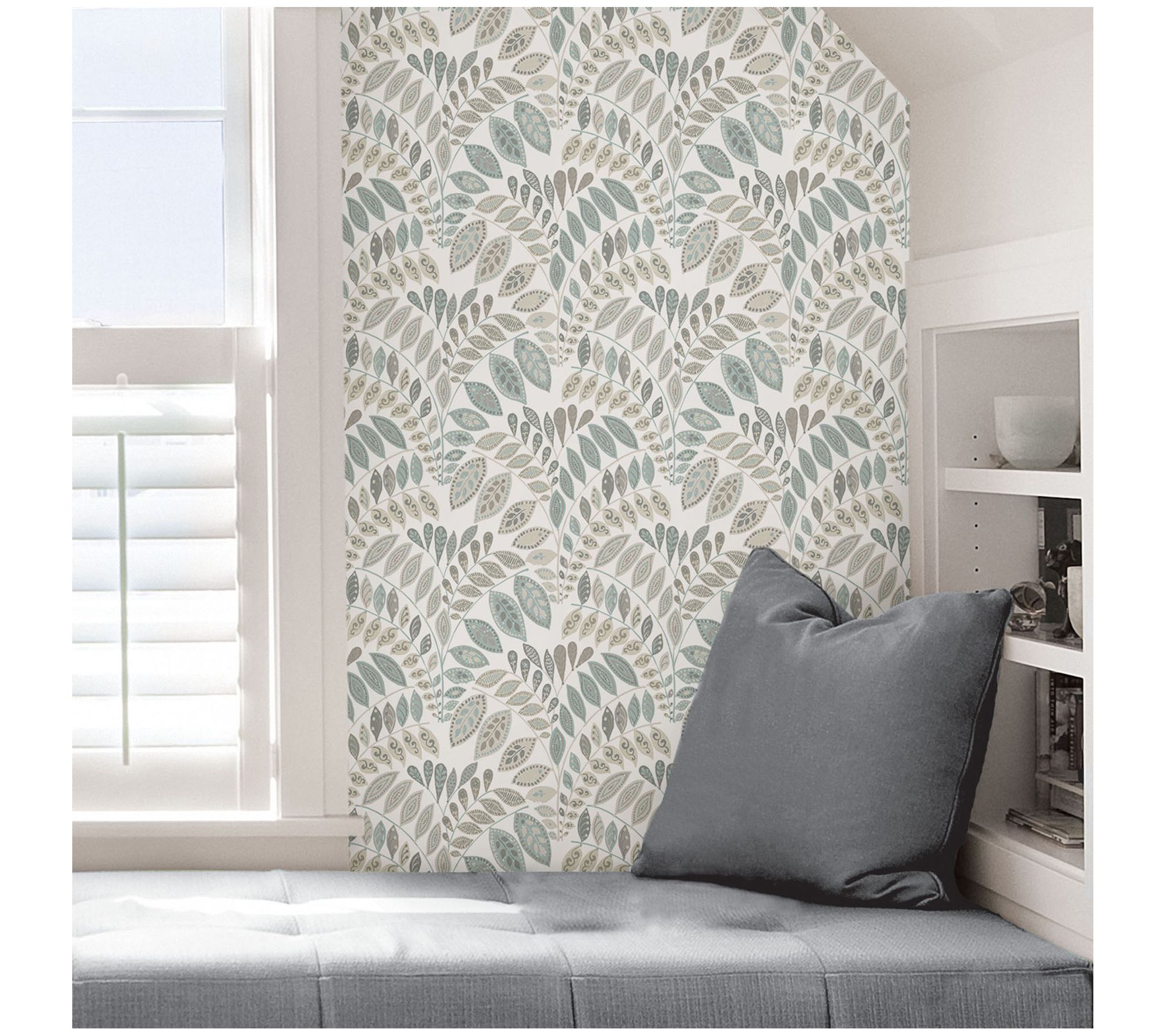 Elevate your home decor with the Gustavus peel-and-stick wallpaper. Featuring a stunning botanical pattern in gray, light teal, and taupe, this wallpaper brings classic Scandinavian style to any room. Easy to apply and remove, it's perfect for renters or anyone looking to add a touch of elegance to their space. From NuWallpaper.