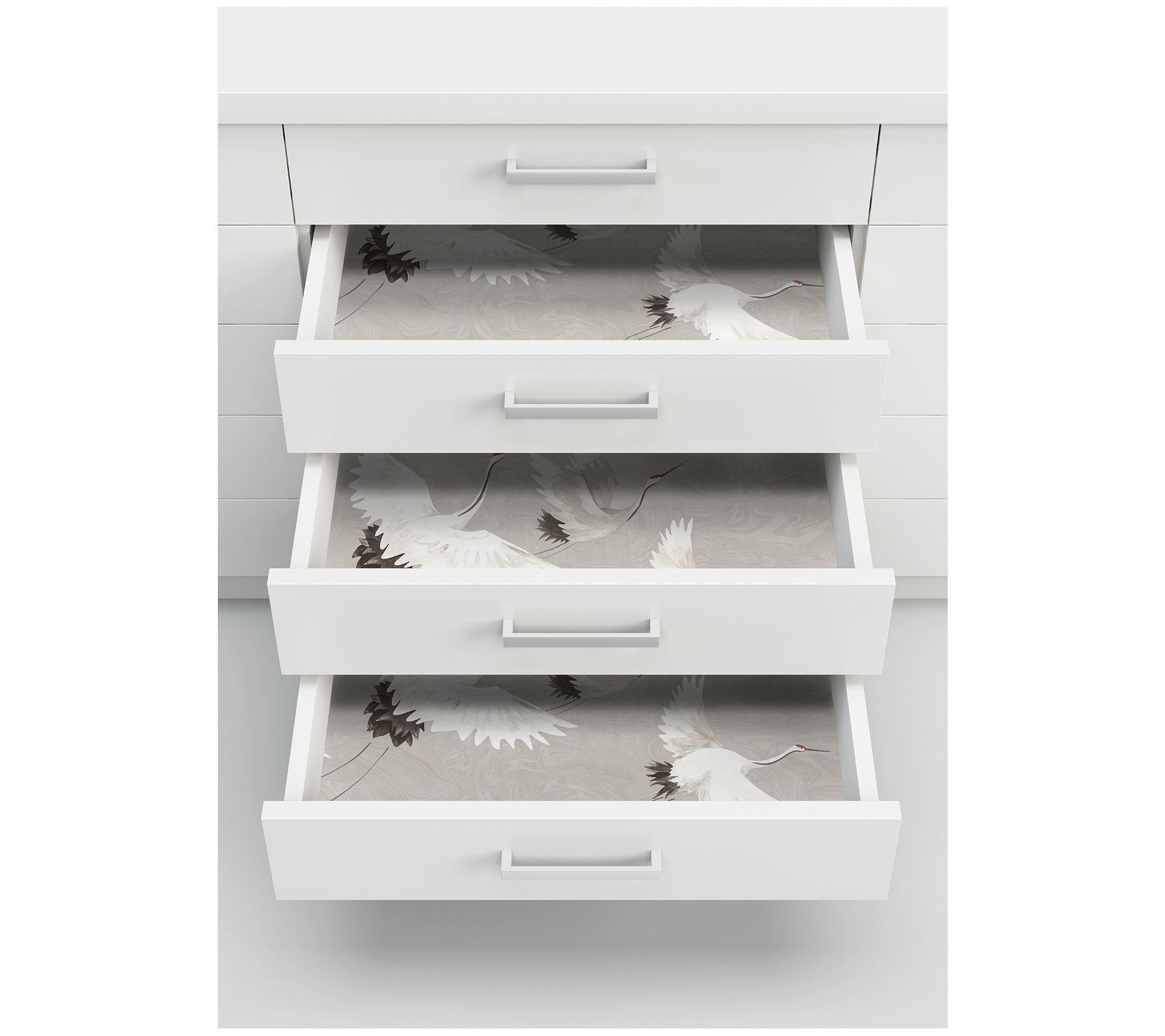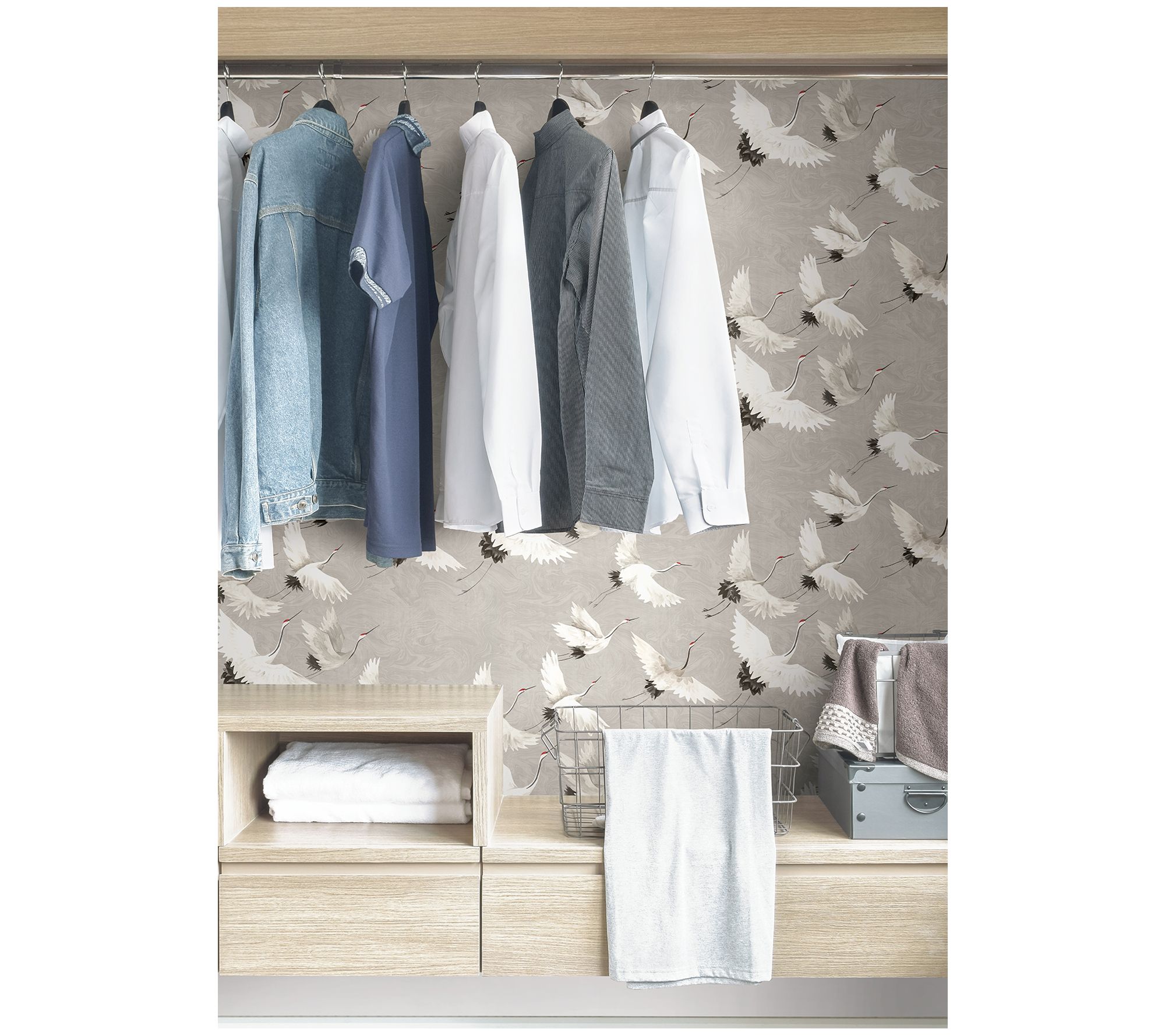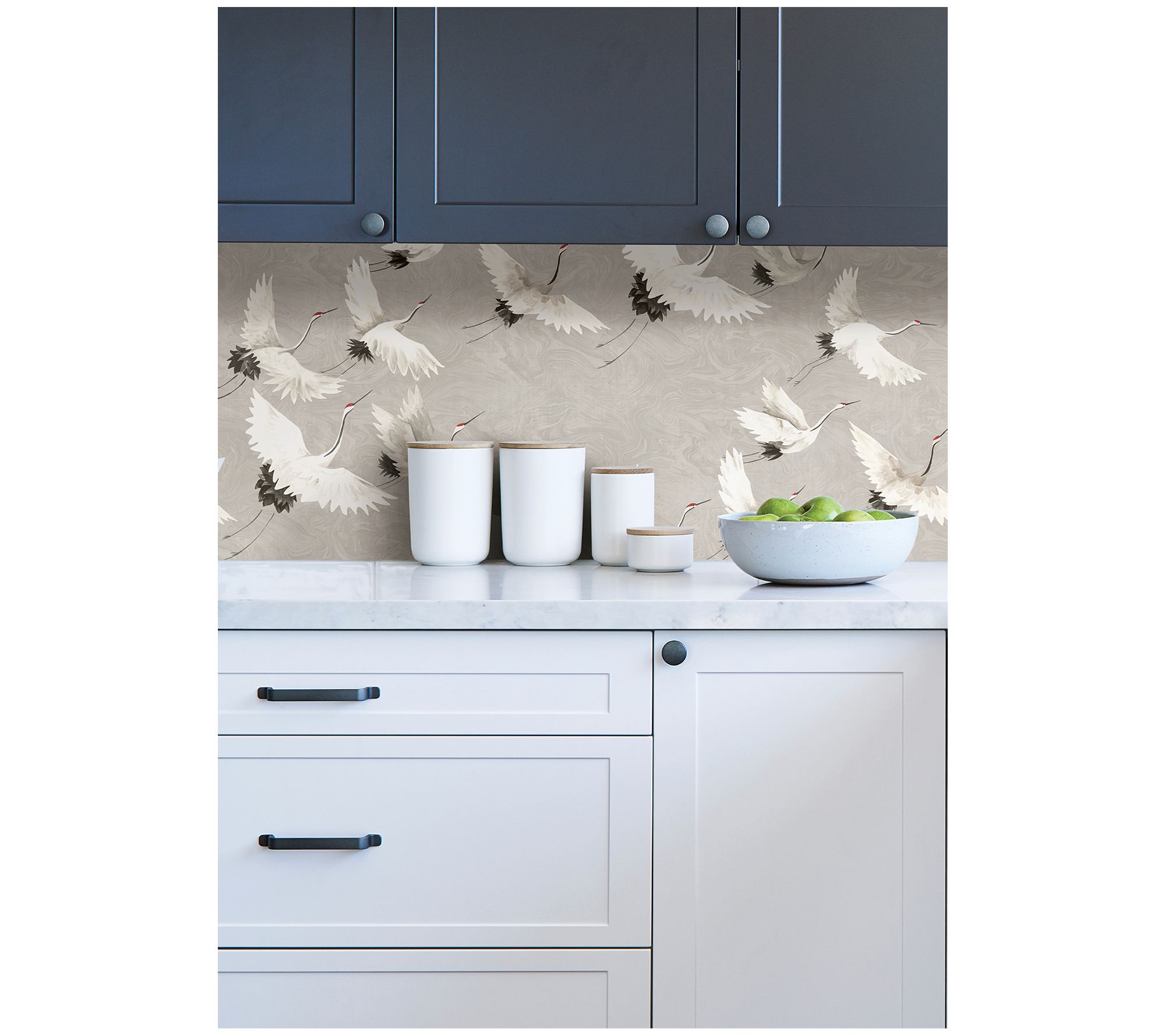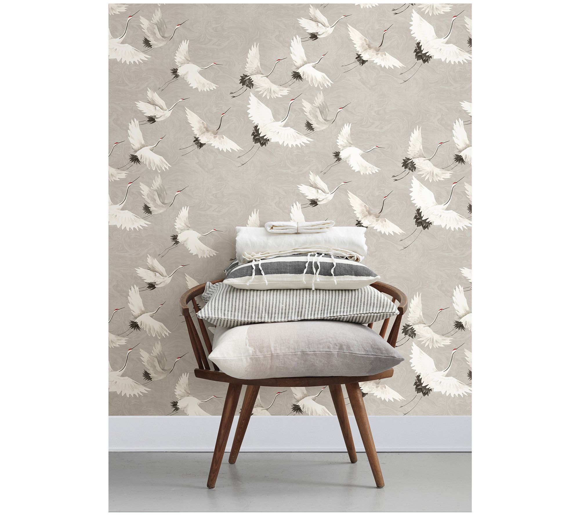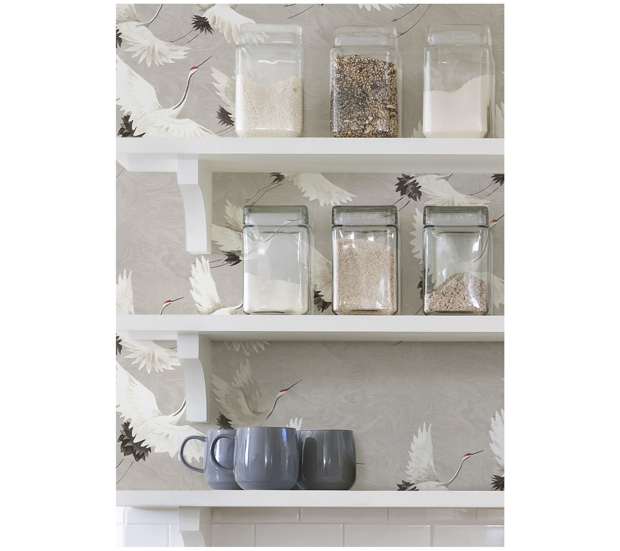 Elevate your space with this Halcyon peel-and-stick wallpaper. Featuring a serene marbled gray backdrop and elegant white cranes, this wallpaper adds a calming touch to any room. Perfect for rentals or home decorating, it's easy to apply and remove without leaving behind sticky residue. From NuWallpaper.