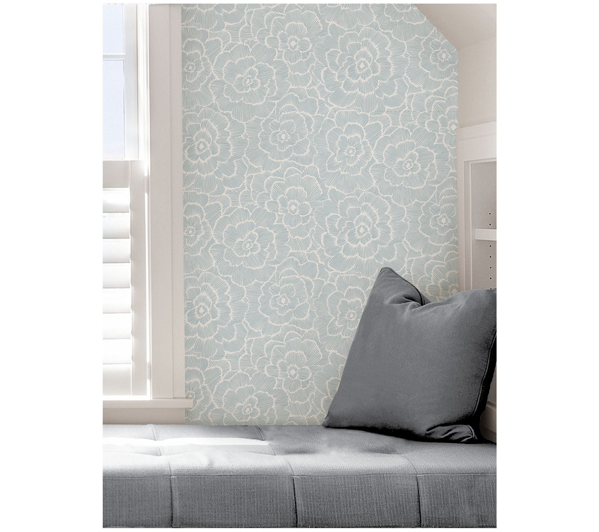Bring tranquil ambiance to your home with this Saraya blue peel-and stick-wallpaper. The white ink against a periwinkle backdrop creates a tactile look, making the flowers appear to burst onto your walls. Perfect for rental or home decorating, this wallpaper is easy to apply and remove without leaving behind sticky residue. From NuWallpaper.