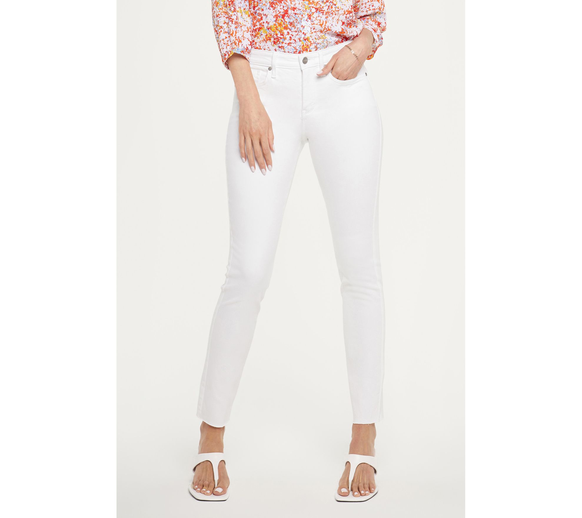 Hello, stylish raw hem! We are lovin' the laid-back-chic vibes on these ankle jeans -- and they're wear-everywhere style. Dress them up with heels or down with slides! From NYDJ.