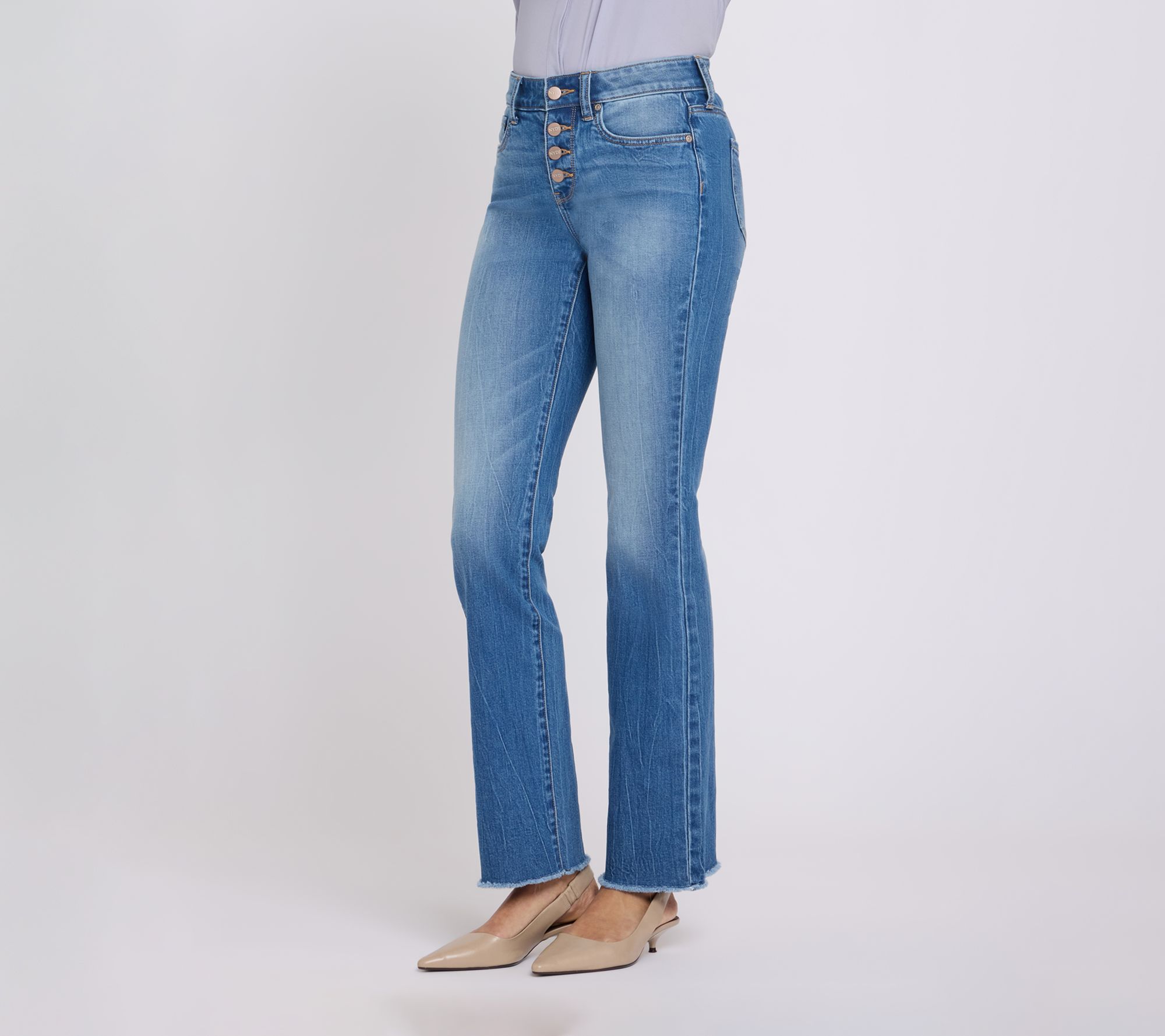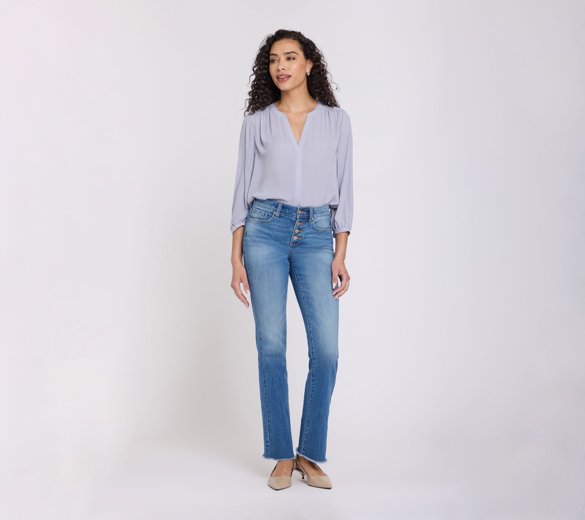 When sleek style meets all-day comfort, these boot-cut jeans are your go-to for everything from casual outings to dinner with friends. The exposed button fly adds an on-trend accent, while flattering Lift Tuck® technology supports and smooths for a confident fit you'll love. From NYDJ.