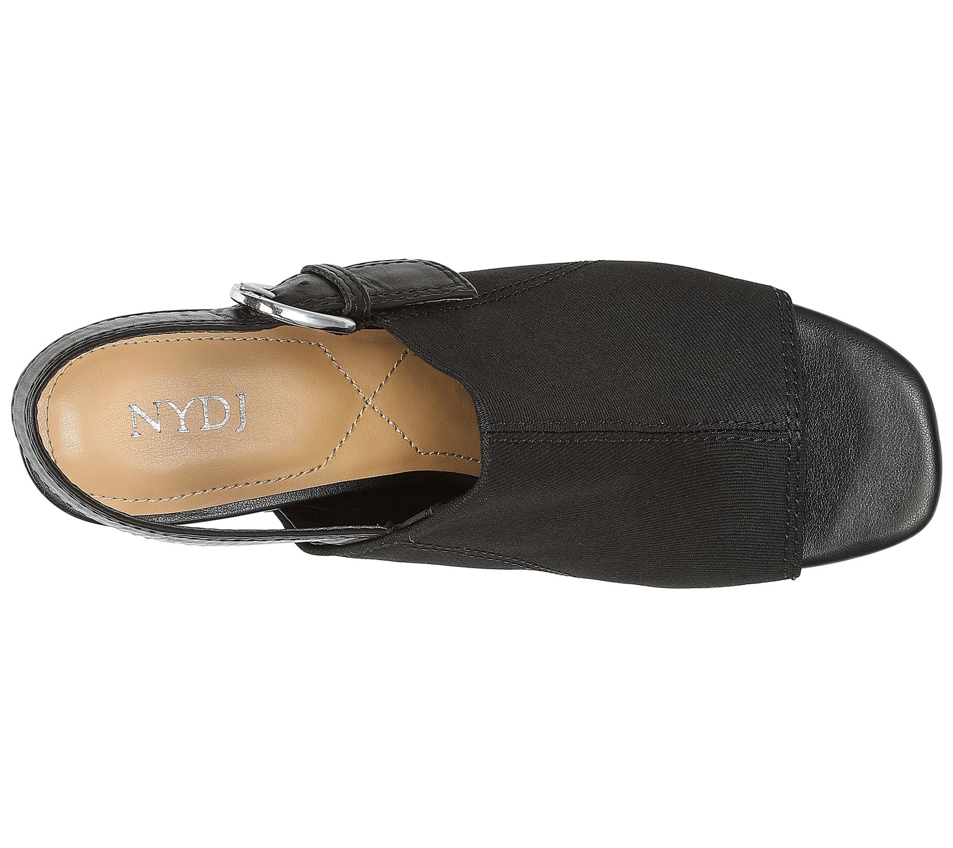 Fun and sassy, the Lyssa open-toe sandal features a flared block heel, flattering slingback design, and a padded insole to keep feet happy all day. From NYDJ.