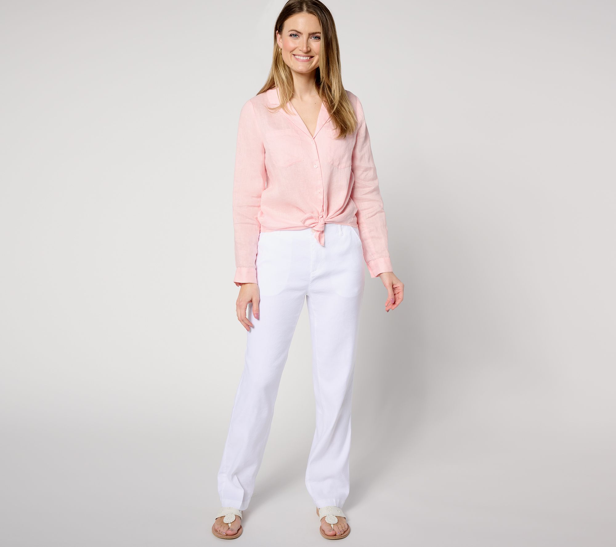 Lightweight, cool, and comfortable, these linen trousers are a sophisticated warm-weather alternative to your favorite jeans. From NYDJ.