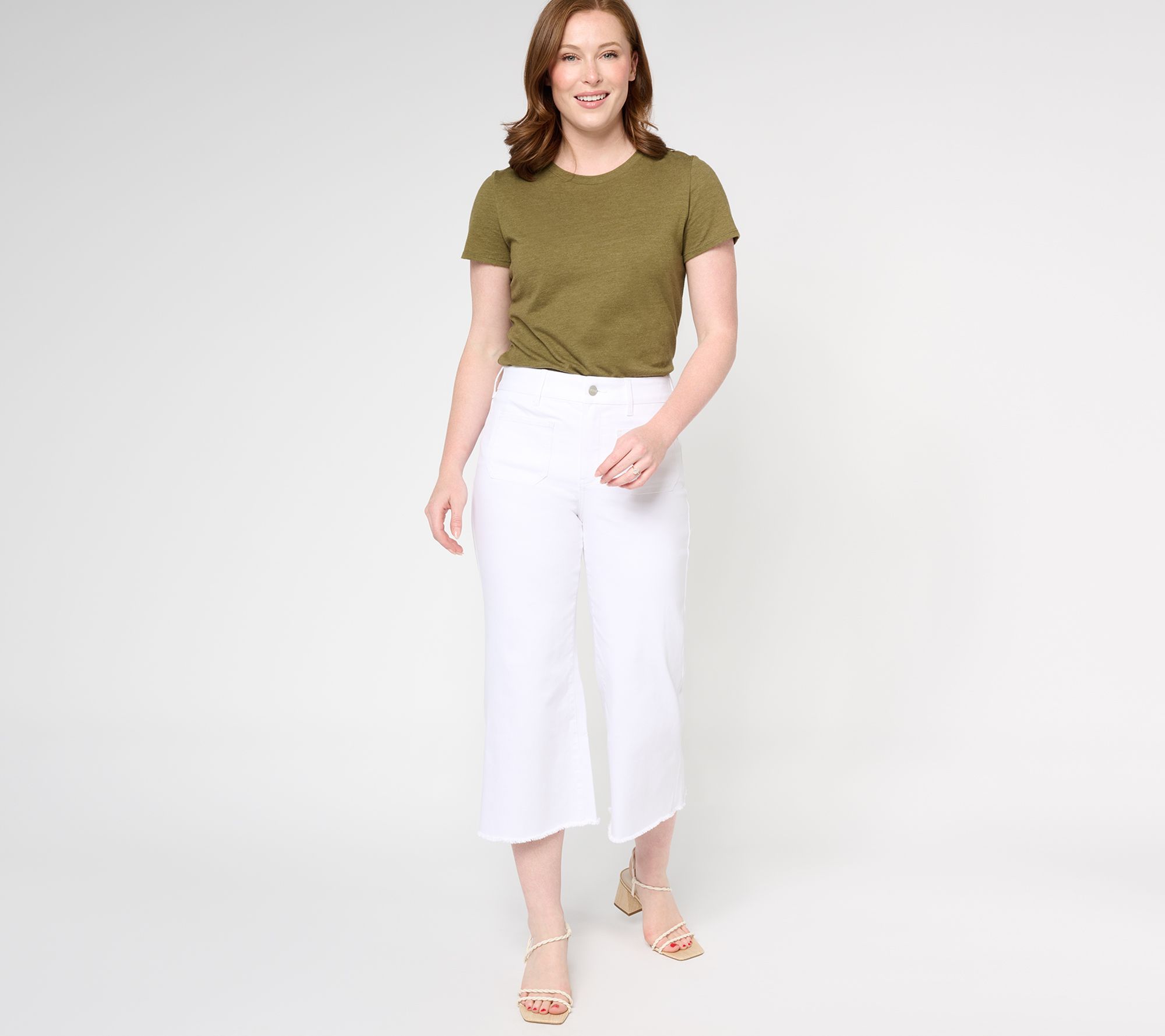 Now showing all over your socials: The Patchie Major captures all the fashion-right deets like a white-hot wide leg and fun, frayed hem -- along with a gorgeous fit! Jump on the joyful dressing bandwagon with a denim capri that's a trend-right option. From NYDJ.