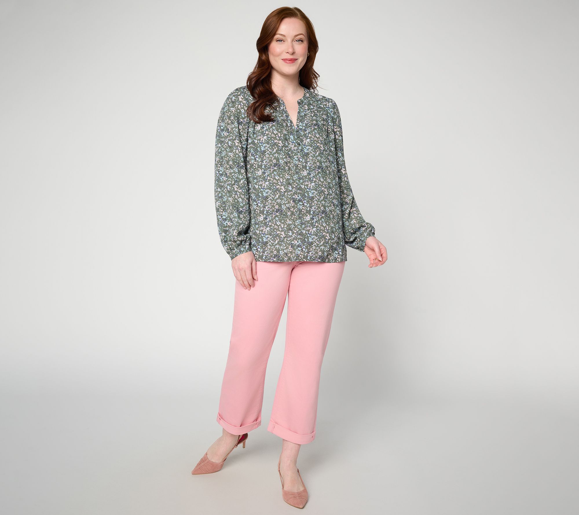 Features: crop length with rolled cuffs; high-rise style; five-pocket styling; Lift Tuck® technology; COOLMAX® technology uses specially engineered fibers that move moisture to the outside of the fabric where it quickly evaporates and, as air flows through the breathable fabrics, helps you feel cooler; uses specially engineered fibers that wick moisture to the outside of the fabric where it can dry quickly