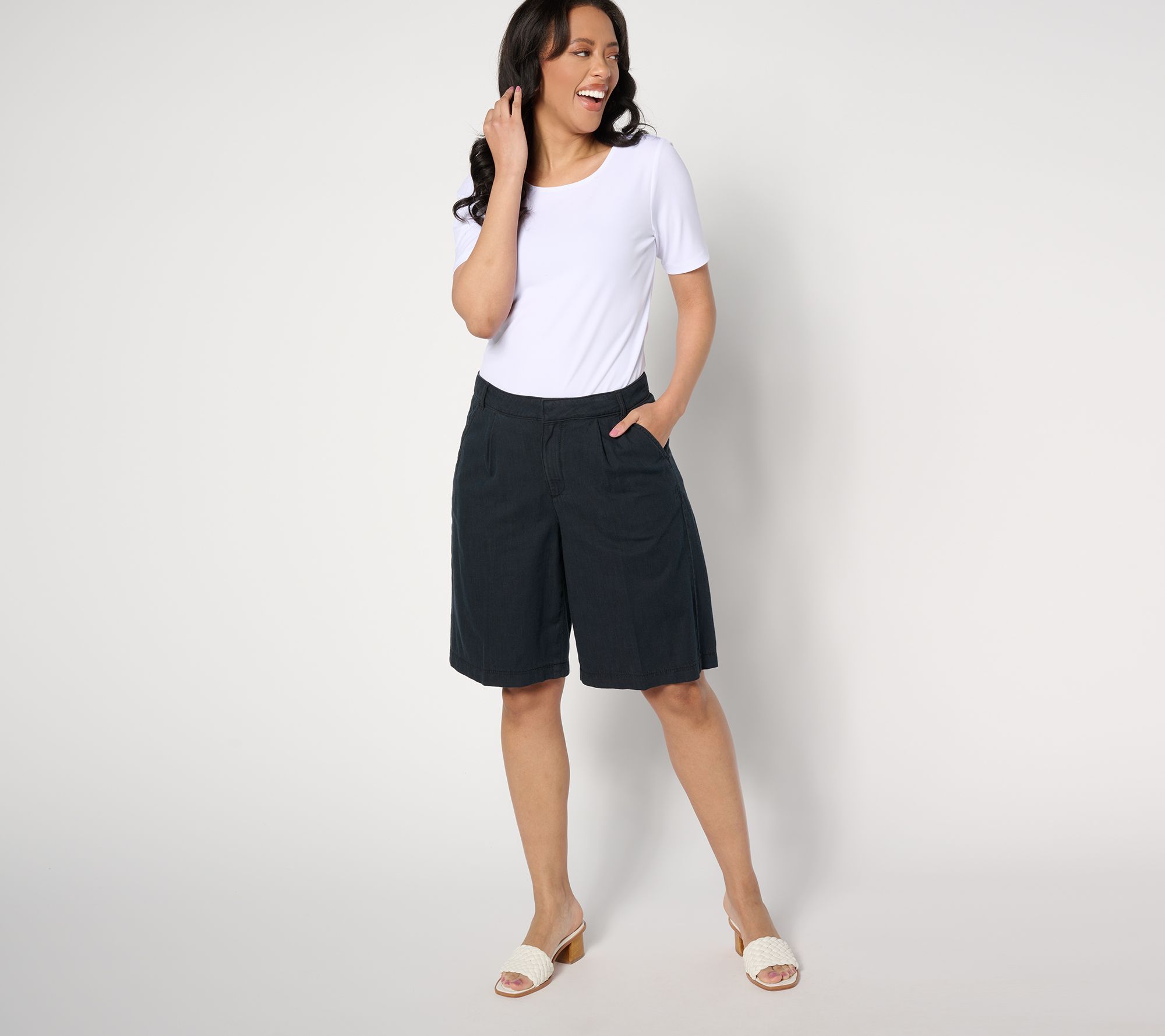 Keep breezy on sunny days by stepping out in these wide-leg Bermuda shorts crafted in lightweight denim. From NYDJ.