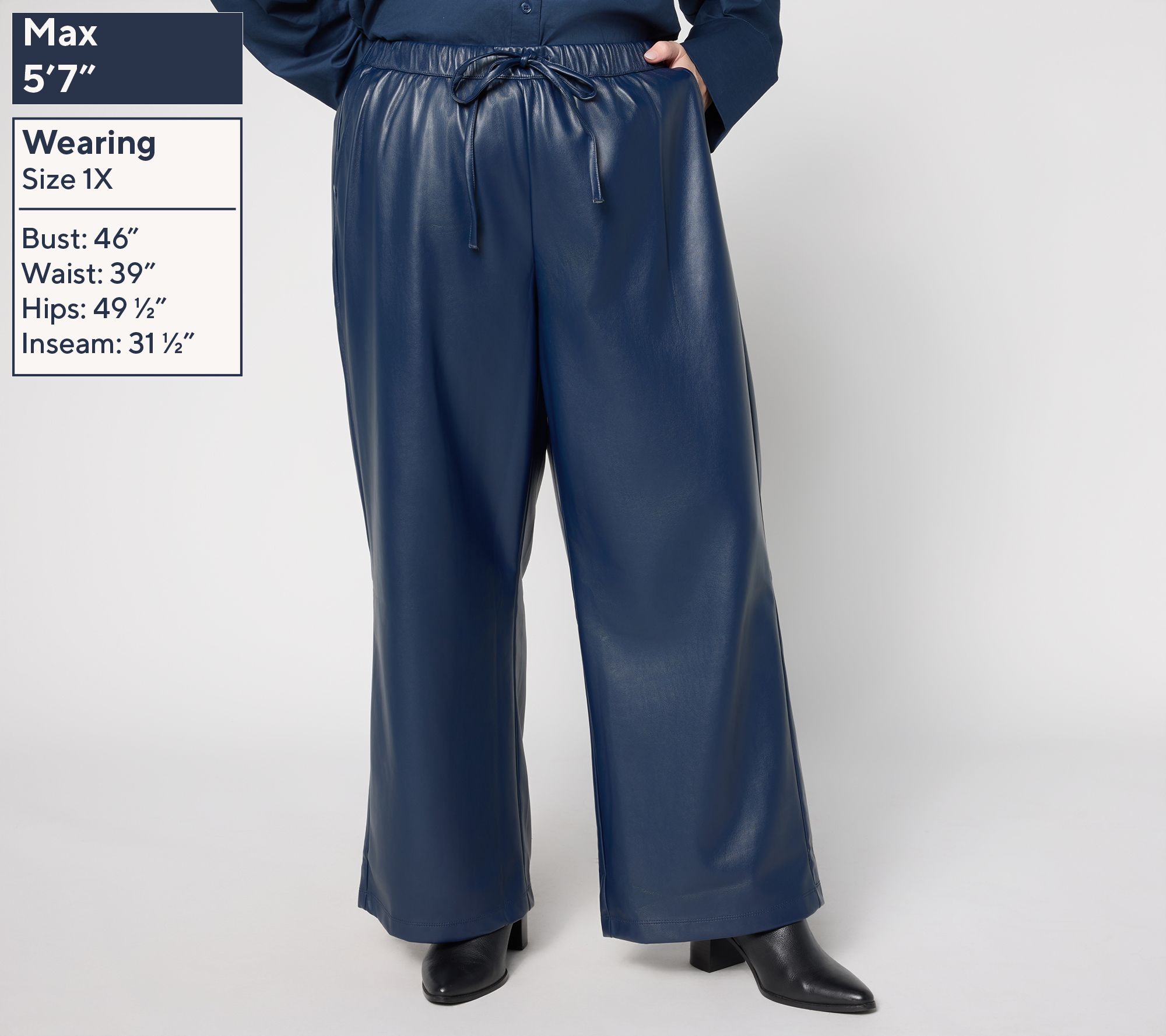 Chic meets shocking comfort with these relaxed faux-leather pants, ready to reinvent your everyday style. The lightweight, wide-leg design pairs easily with tees or sweaters, while a stretch drawstring waist brings ease to your day and Lift Tuck® technology helps create a boost from behind you'll love. From NYDJ.