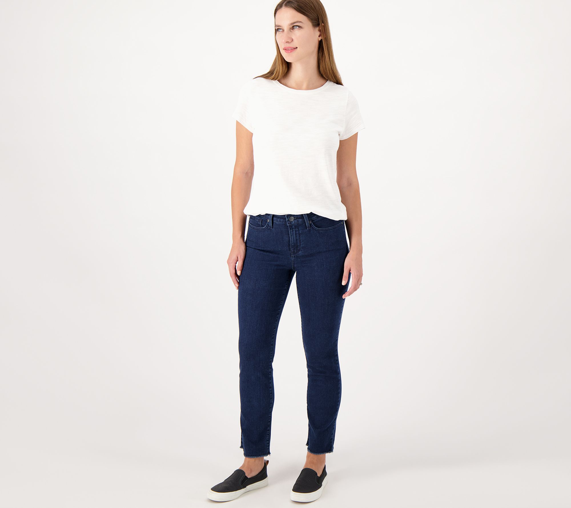 Match these frayed ankle jeans with heels, flats, wedges, sneakers, and yes, even your favorite sandals, to create gorgeous outfits all year round. From NYDJ.