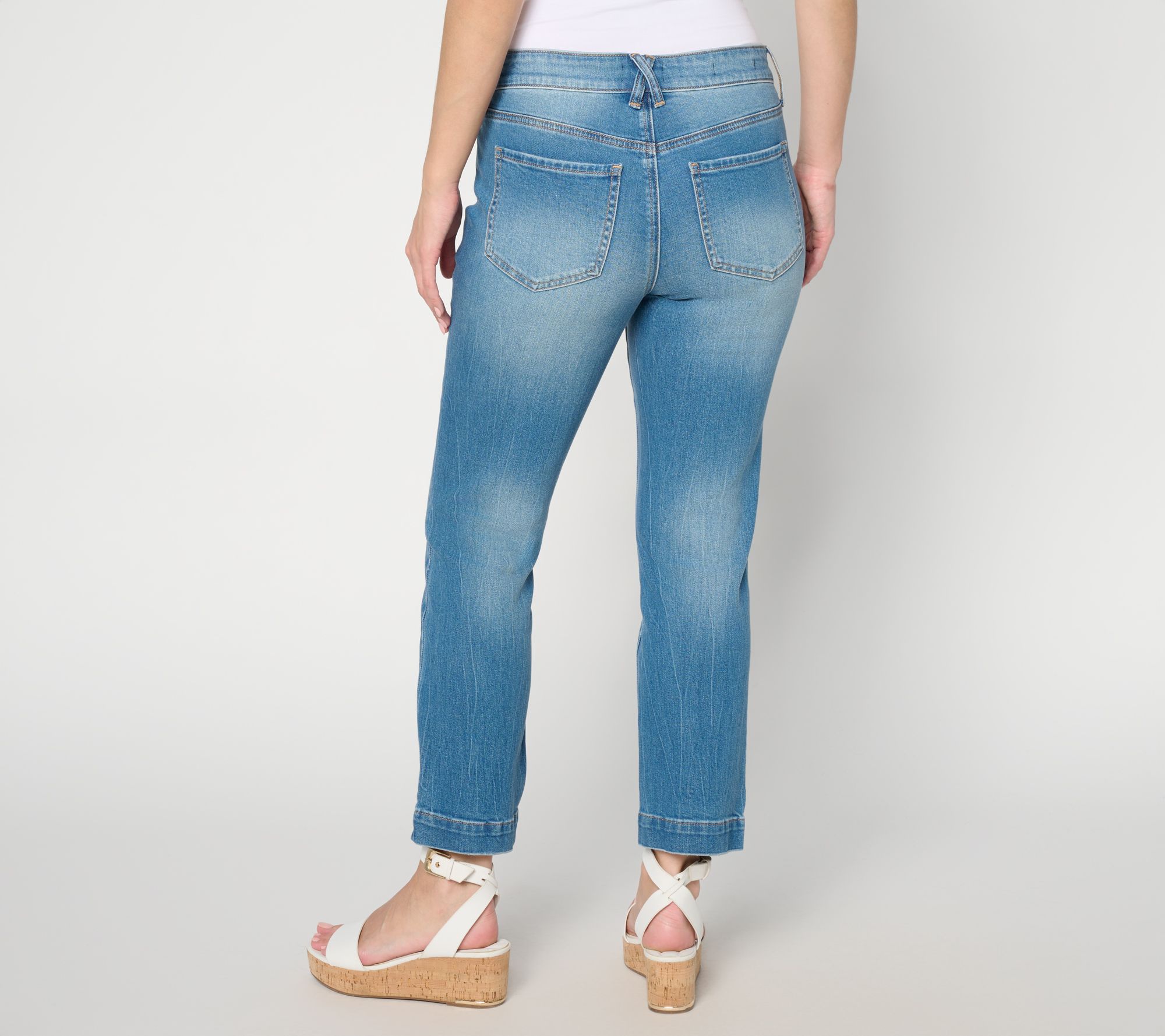 Features: ankle length, five-pocket styling, Lift Tuck® technology, side slits