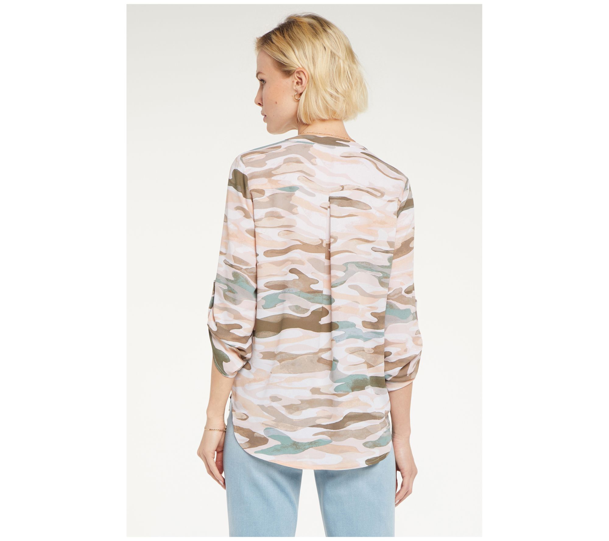 Throw on this relaxed modern top with rolled 3/4-length sleeves for that utility-chic vibe you love. From NYDJ.