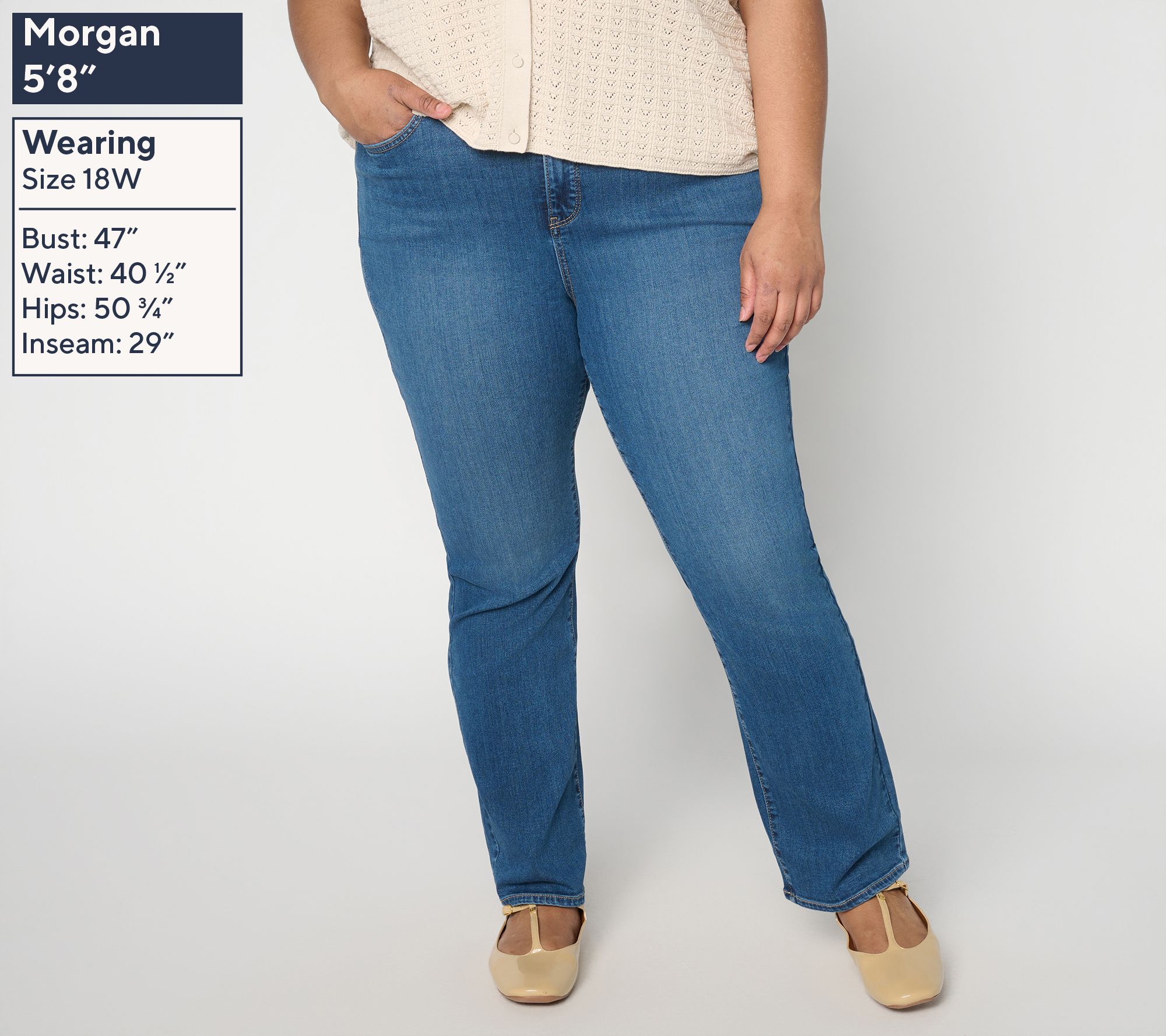 Crafted in Sure Stretch denim, the super soft and comfy fabric offers abundant stretch so your jeans retain their shape wear after wear. And thanks to NYDJ's revolutionary Lift Tuck® technology (which combines a built-in patented crisscross panel that flattens in the front with a contouring construction that lifts your curves in the back), you’ll look fabulous from any angle. Add in a straight leg and high waist to this flattering silhouette and you have a dream for dressing up or down -- from sneaks and tees to boots and a blazer. Features like five pockets and a button-and-fly closure provide classic finishing touches.