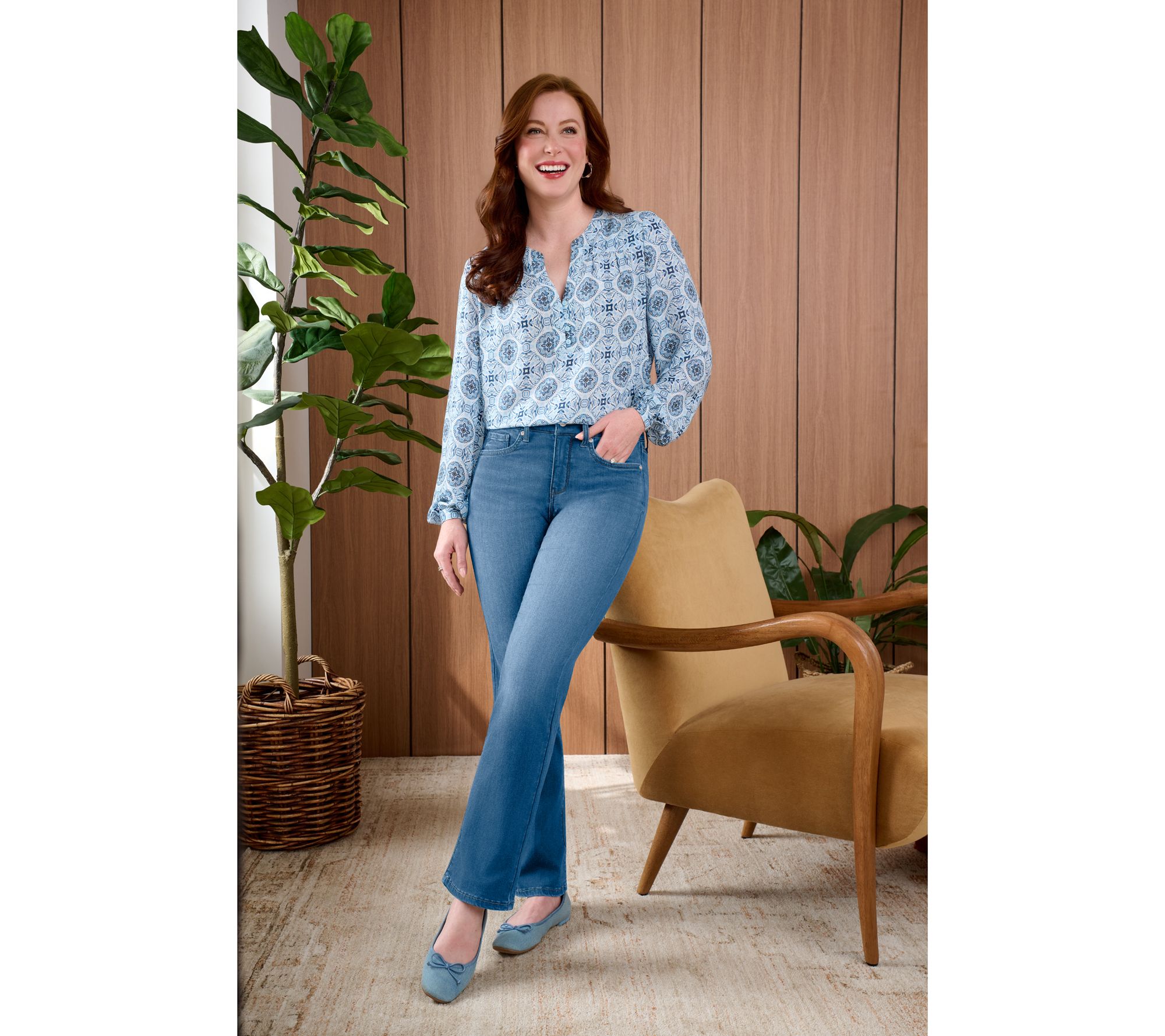 Crafted in Sure Stretch denim, the super soft and comfy fabric offers abundant stretch so your jeans retain their shape wear after wear. And thanks to NYDJ's revolutionary Lift Tuck® technology (which combines a built-in patented crisscross panel that flattens in the front with a contouring construction that lifts your curves in the back), you’ll look fabulous from any angle. Add in a straight leg and high waist to this flattering silhouette and you have a dream for dressing up or down -- from sneaks and tees to boots and a blazer. Features like five pockets and a button-and-fly closure provide classic finishing touches.