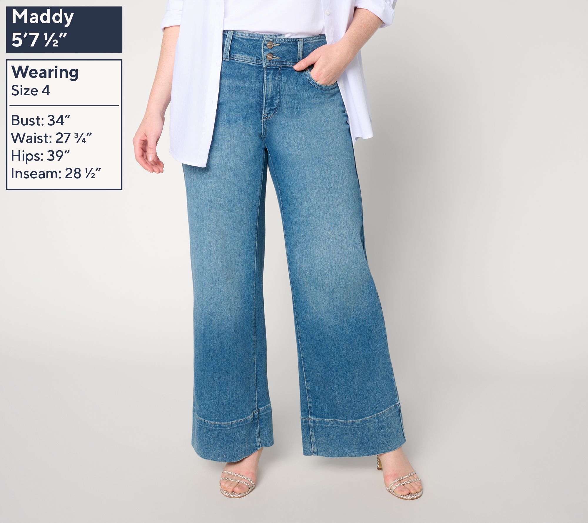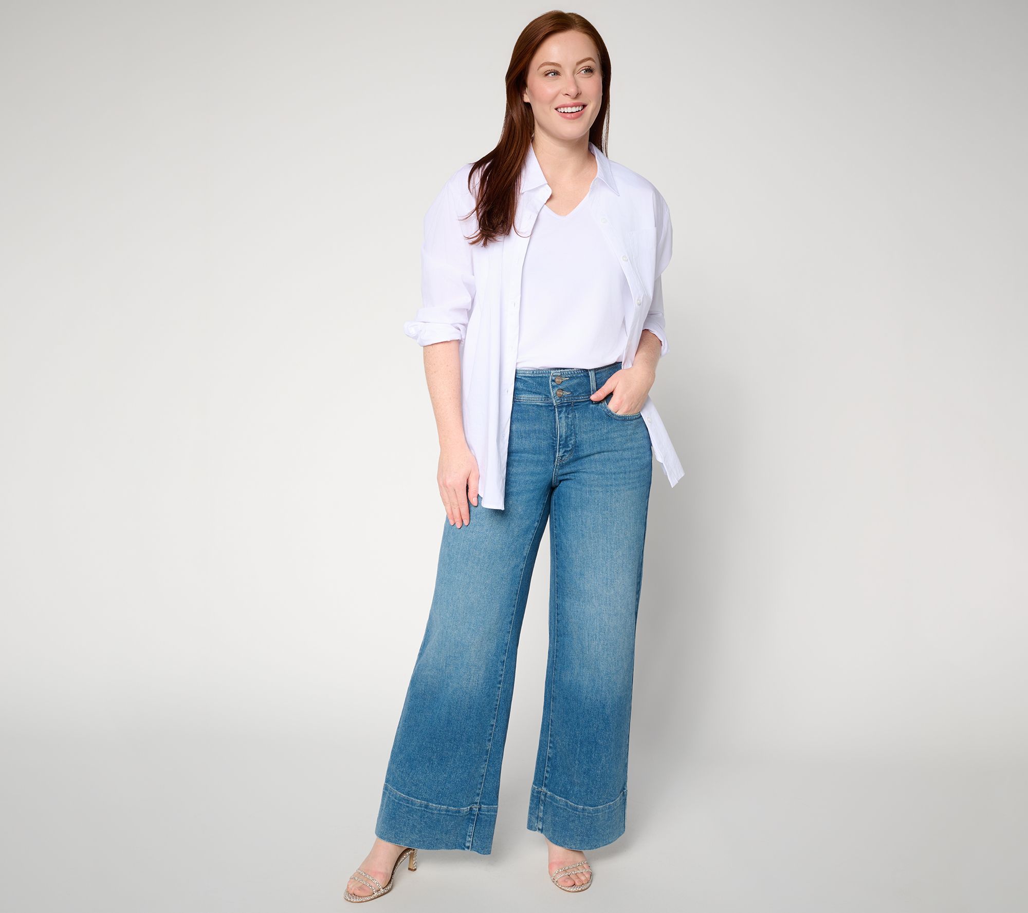 Great for workdays that linger into evening dinners, these wide-leg jeans bring modern structure and supportive smoothness thanks to a wide waistband and Lift Tuck® paneling designed to sculpt your silhouette. Shaped with stretch for lasting comfort, they offer a polished look that transitions seamlessly from office-ready blouses to weekend favorites. From NYDJ.
