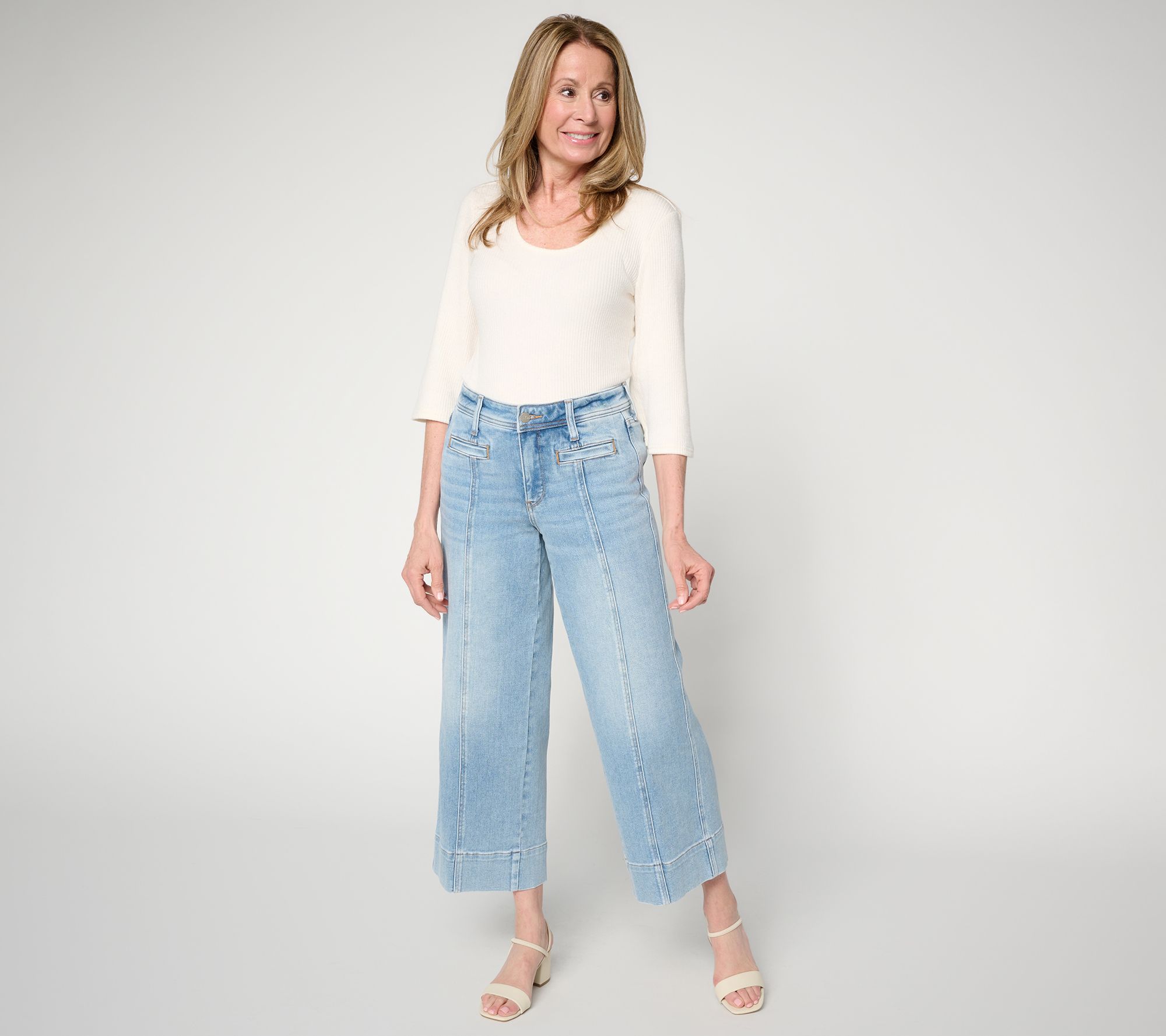 Whether you're heading to a gallery opening or brunching with friends, these wide-leg pants add a stylish foundation to your look. Front seams draw the eye for a flattering effect, while convenient welt and patch pockets offer space for essentials -- just add a favorite jacket for a polished finish. From NYDJ.