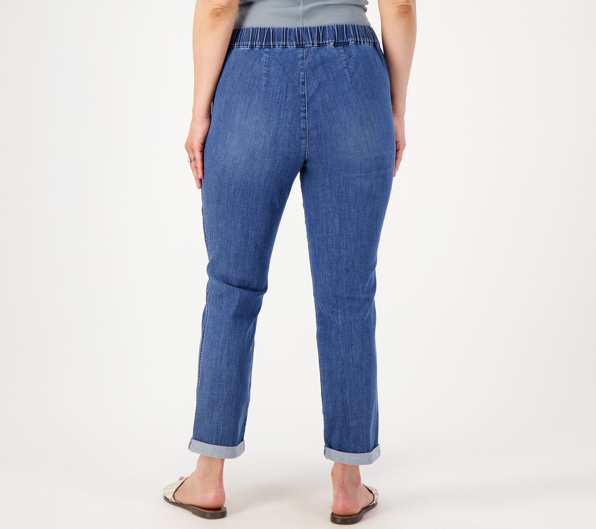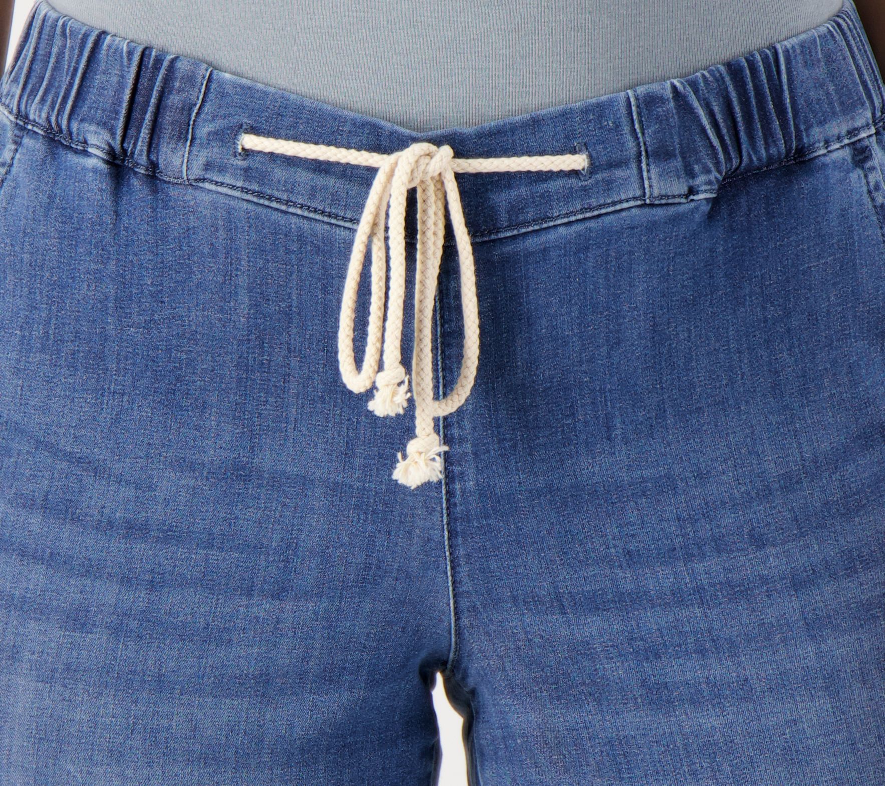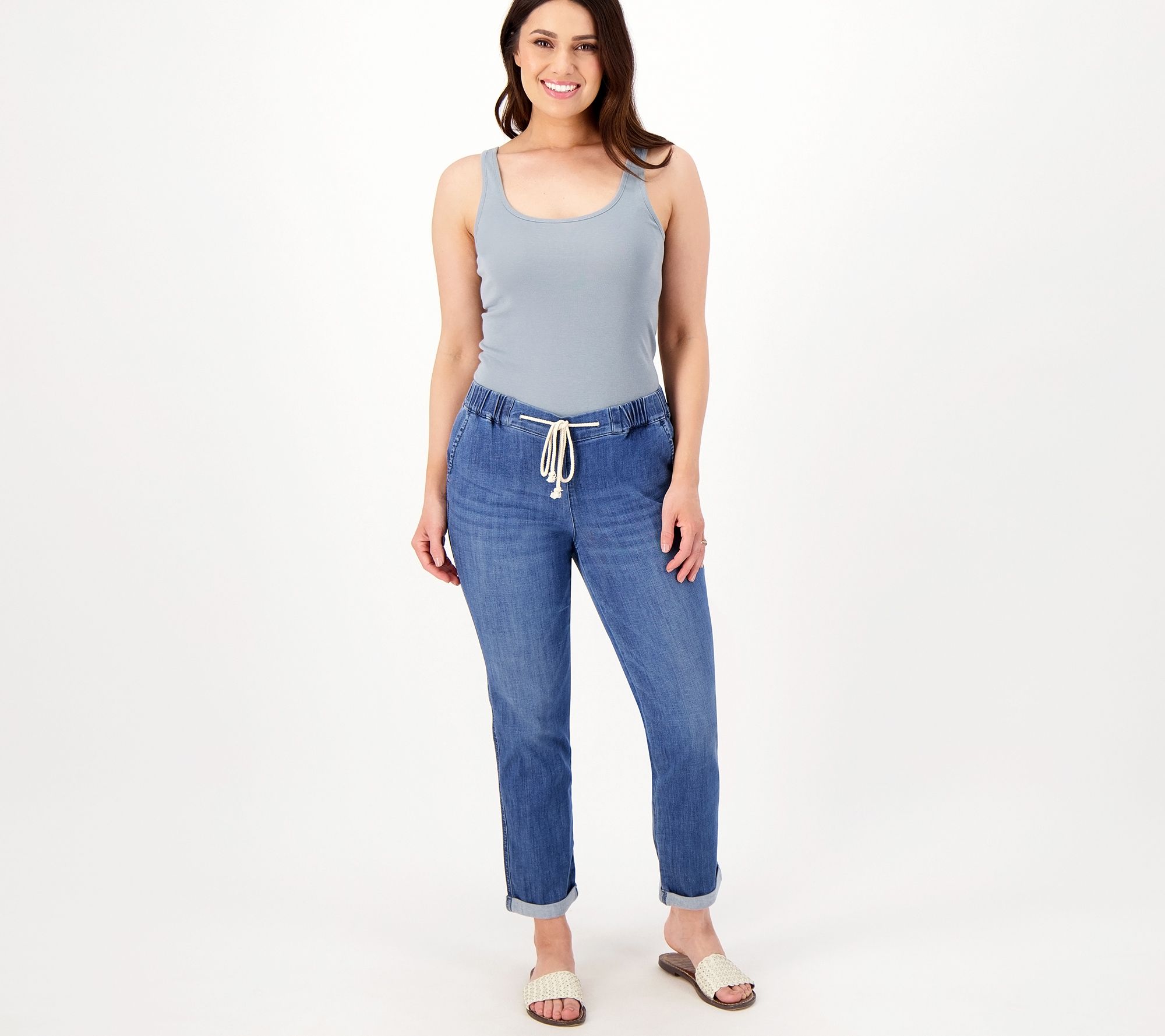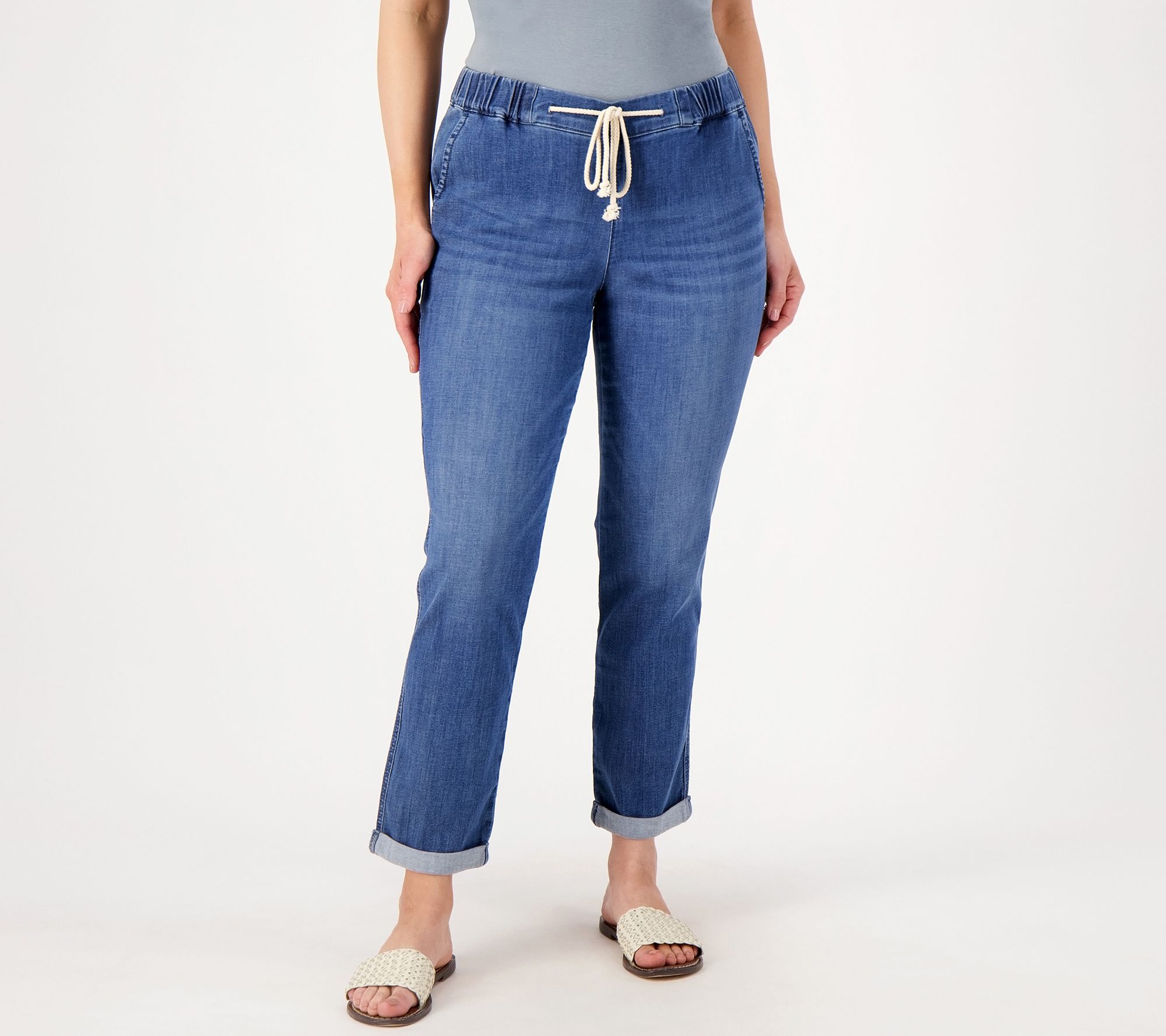 Pencil in beachcombing, bike riding, and long walks on the boardwalk 'cause you've found the perfect pair to take you -- everywhere! A slimmer jogger shape and stretchy drawstring waistband lend athletic detail to this lightweight denim. And those rolled cuffs? Yup, alll the vacay feels. From NYDJ.