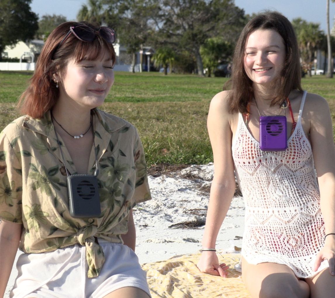 Whether you're out for a walk, doing a bit of gardening, or just catching some sun, a cool breeze is always welcomed. This lightweight fan necklace makes it easy to keep your cool wherever you go. From O2Cool.