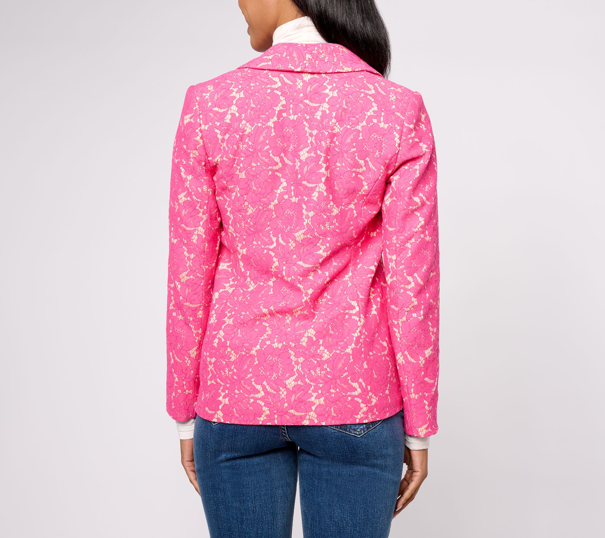 Occasions Susan Graver Pet Lace Fusion Notch Collar Fully Lined Blazer