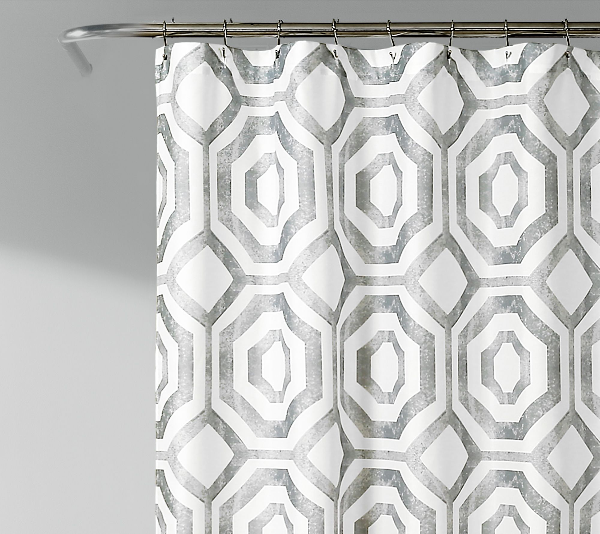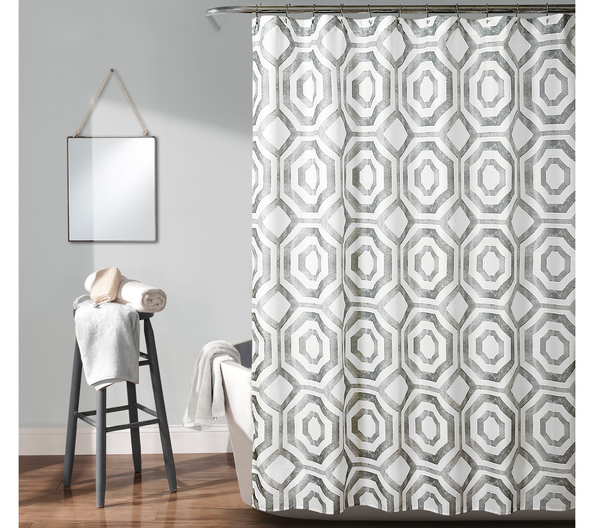 Show off your mad styling skills in an unexpected place. One fab shower curtain--like this octagon block design--is all it takes to turn your bath into a showpiece. From Lush Decor.