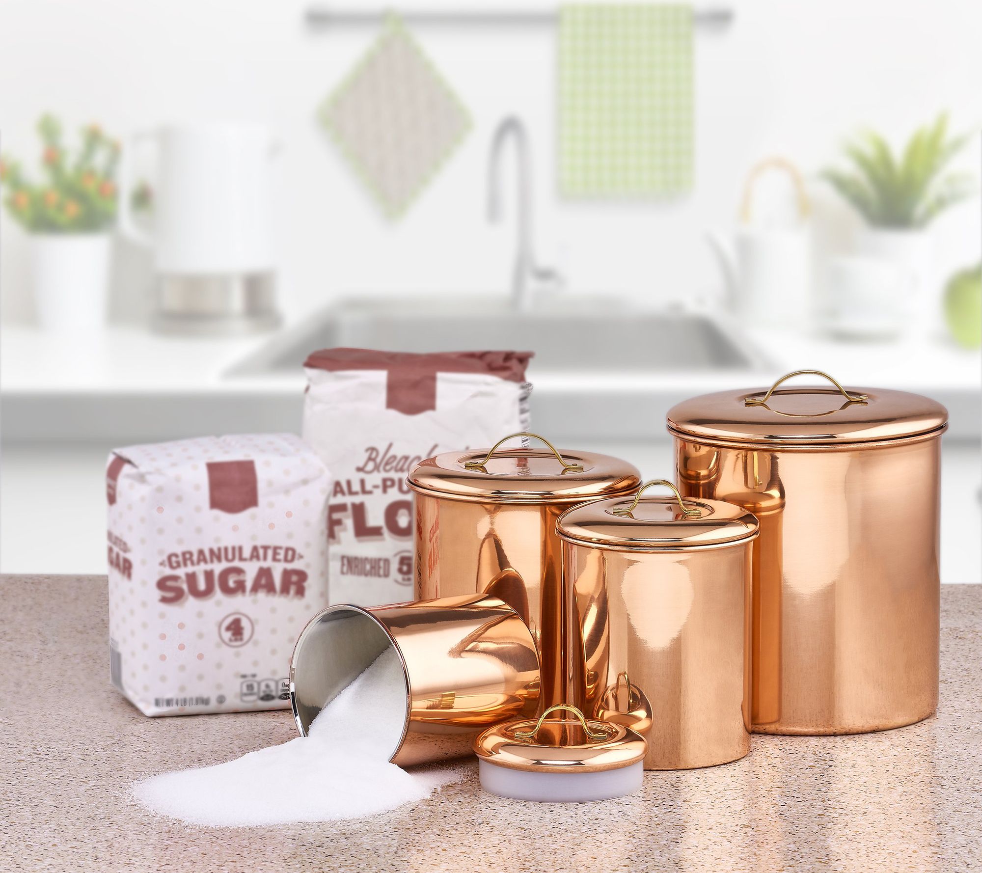 Store your snacks, coffee, flour, or sugar in classic style with these stylish polished canisters. From Old Dutch International.
