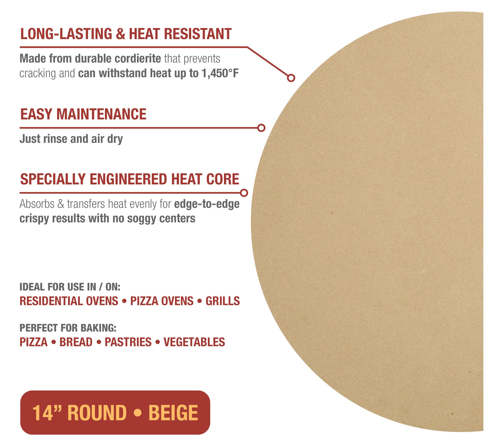 • Pizza stone: cordierite construction