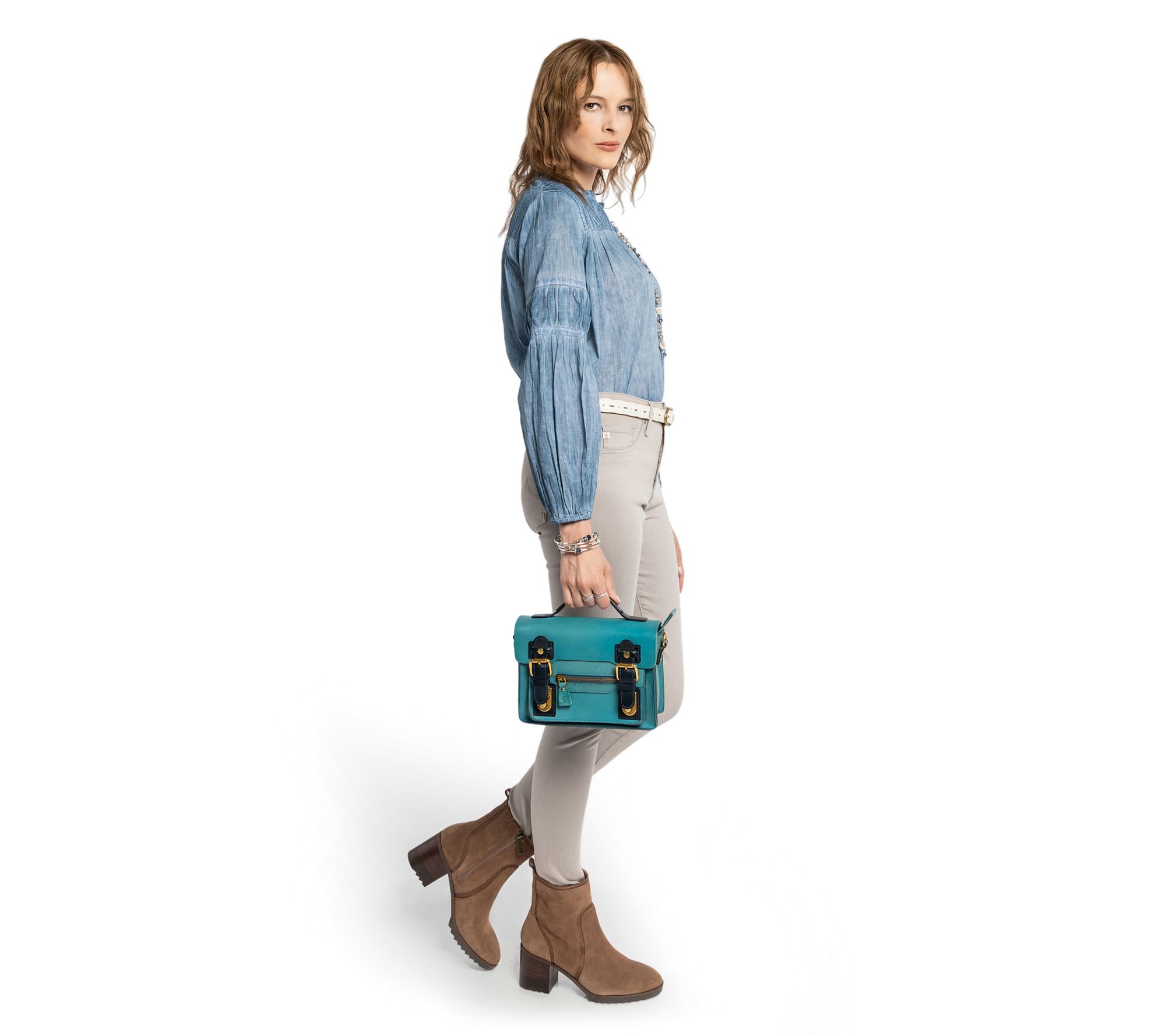 Picture yourself heading out for a laid-back brunch or a quick shopping spree, effortlessly combining style and practicality with the Aster Mini Satchel. Crafted from exquisite leather, this chic bag features a dual push-lock flap for secure and organized storage of your essentials. The detachable strap offers versatility, giving you the option to wear it crossbody or carry it by the handle. This satchel is the perfect blend of timeless elegance and modern functionality. From Old Trend.