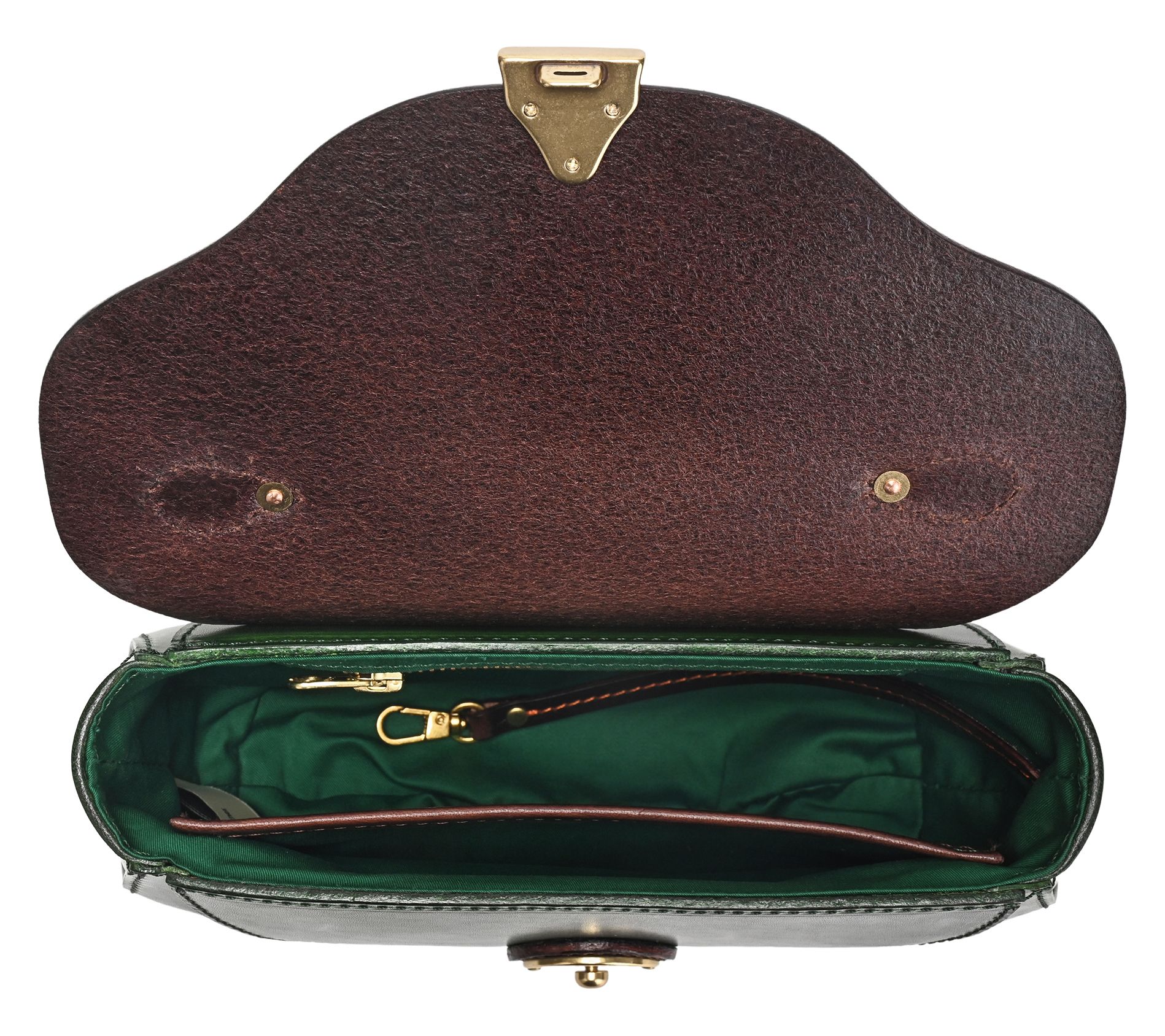 • Lock clasp closure; single handle; detachable, adjustable single strap