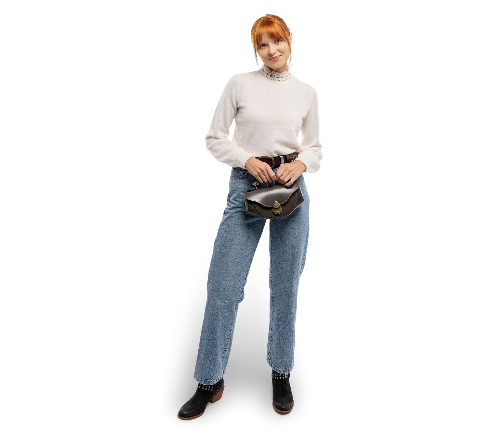 Stitched details and a geometric silhouette give this leather crossbody a distinctive look for everything from brunch dates to weekend adventures. The top handle and wide opening make it a breeze to grab essentials, while the adjustable, detachable strap lets you carry it your way. From Old Trend.