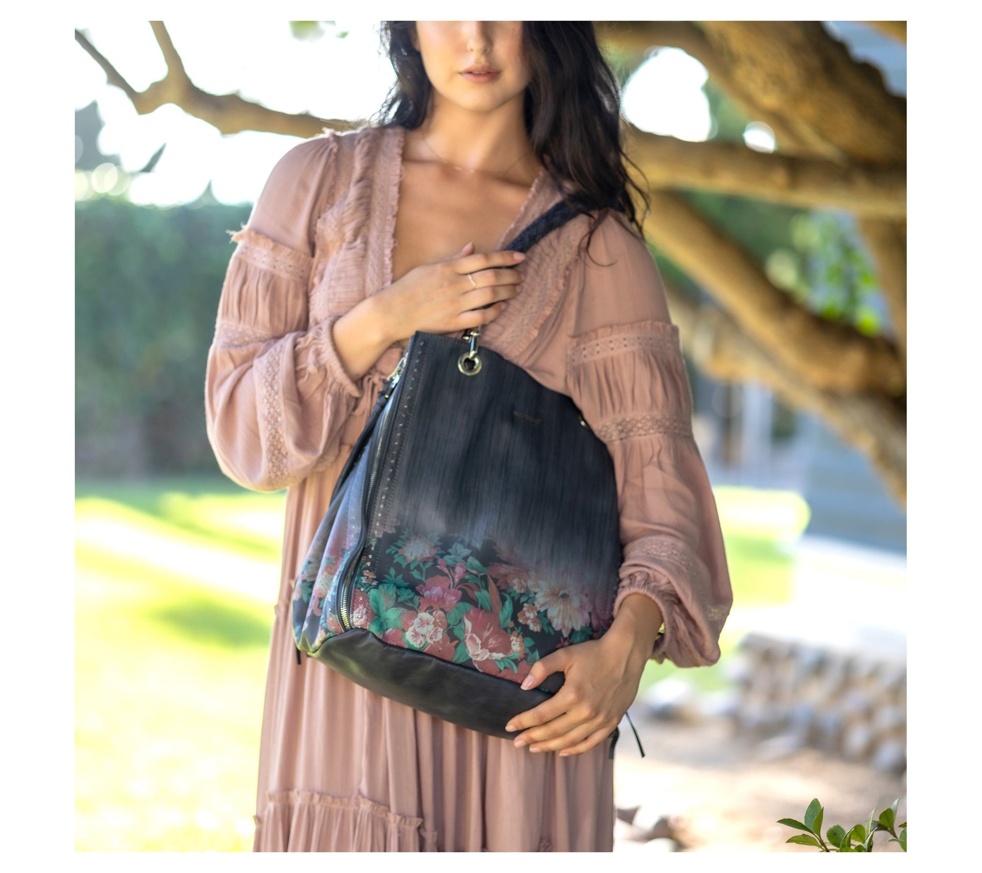 Measurements: Bag 13"W x 14.5"H x 7"D; Makeup pouch 8.5"W x 4.75"H x 0.25"D