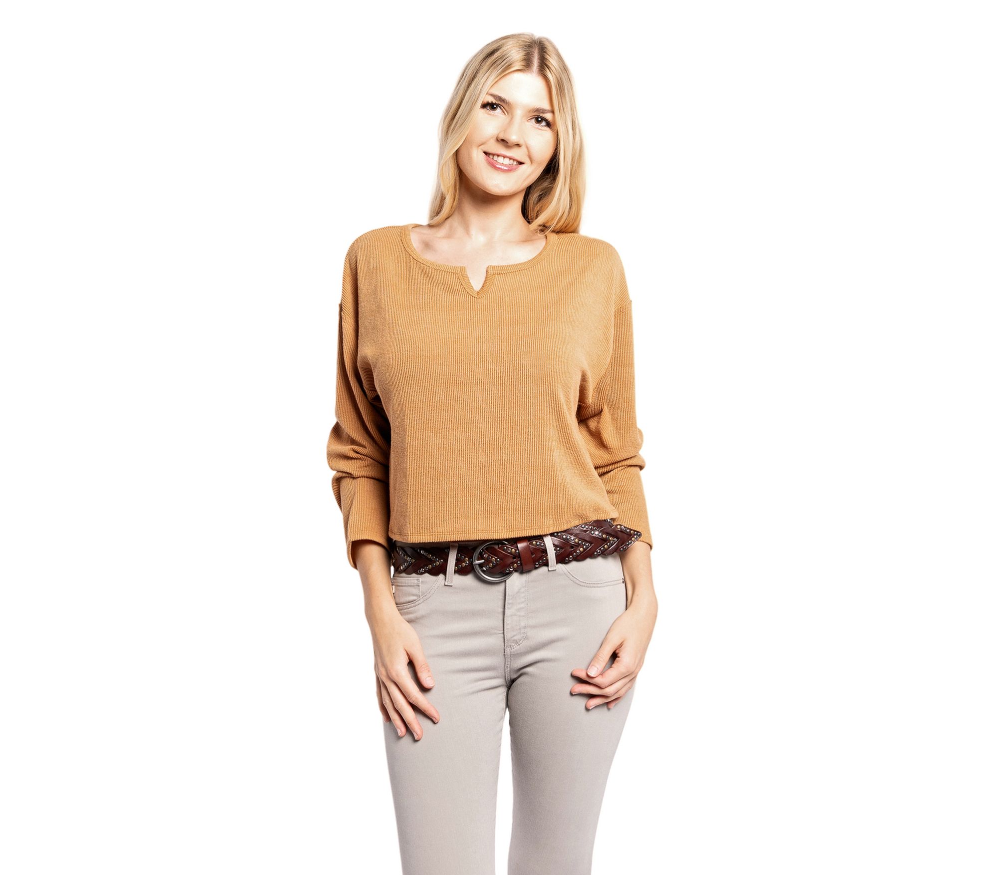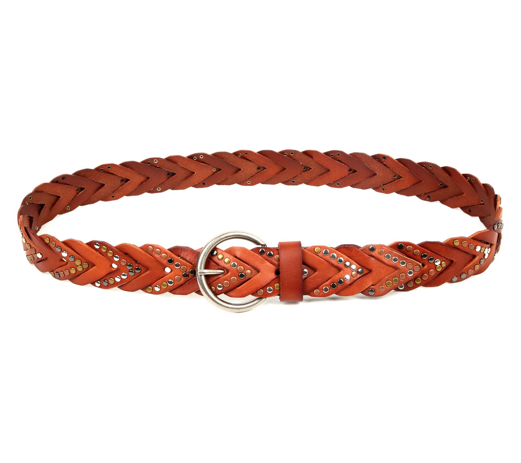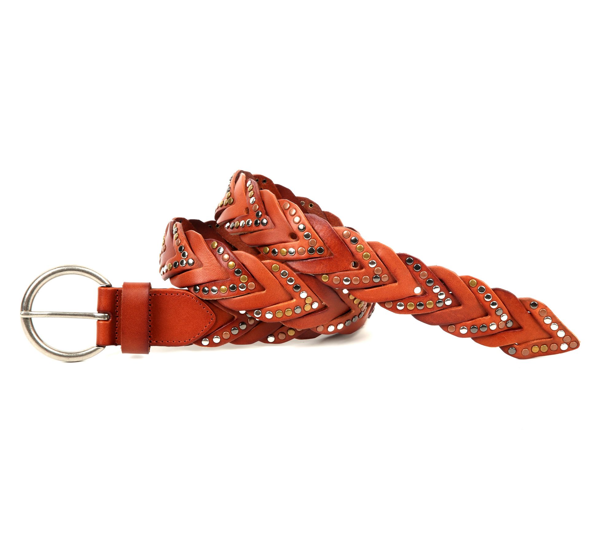 You know that belt that just pulls everything together? This timeless leather piece is your go-to. Woven with care, it features beautifully distressed leather complemented by nickel-free metal studs for a touch of rugged charm. The brass single-prong buckle not only secures it firmly but also adds an antique finish that pairs perfectly with any outfit. Whether you're dressing up for a casual day out or an evening gathering, this belt blends seamlessly into your look. From Old Trend.
