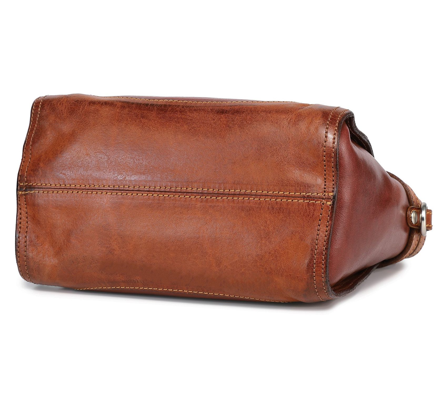 Whether heading to work or meeting friends for brunch, this mini leather satchel keeps essentials organized in elevated style. Dual bridge-shaped handles and a detachable crossbody strap offer multiple ways to carry, while interior pockets and a secure zip-top closure make days on the move effortless. From Old Trend.