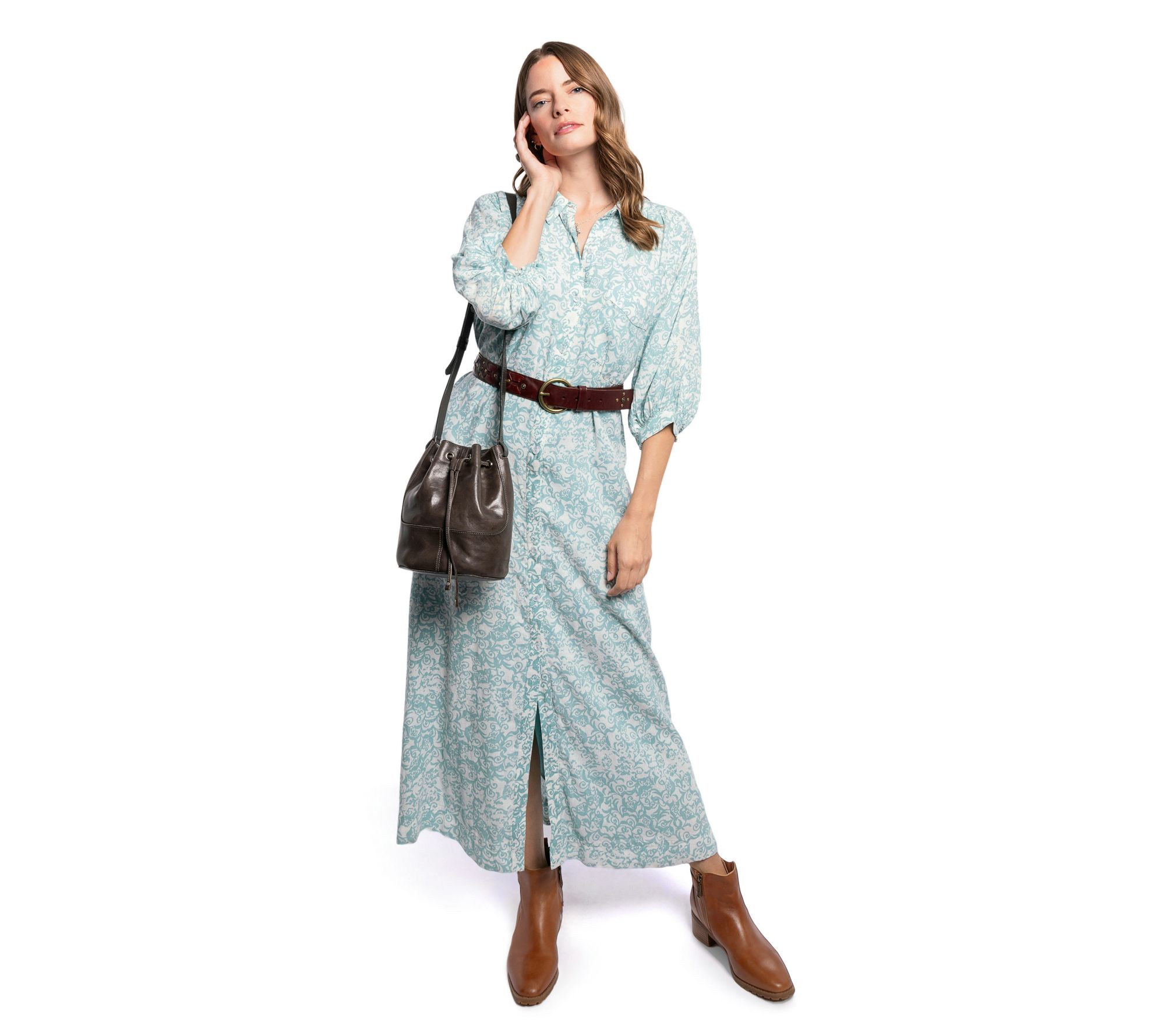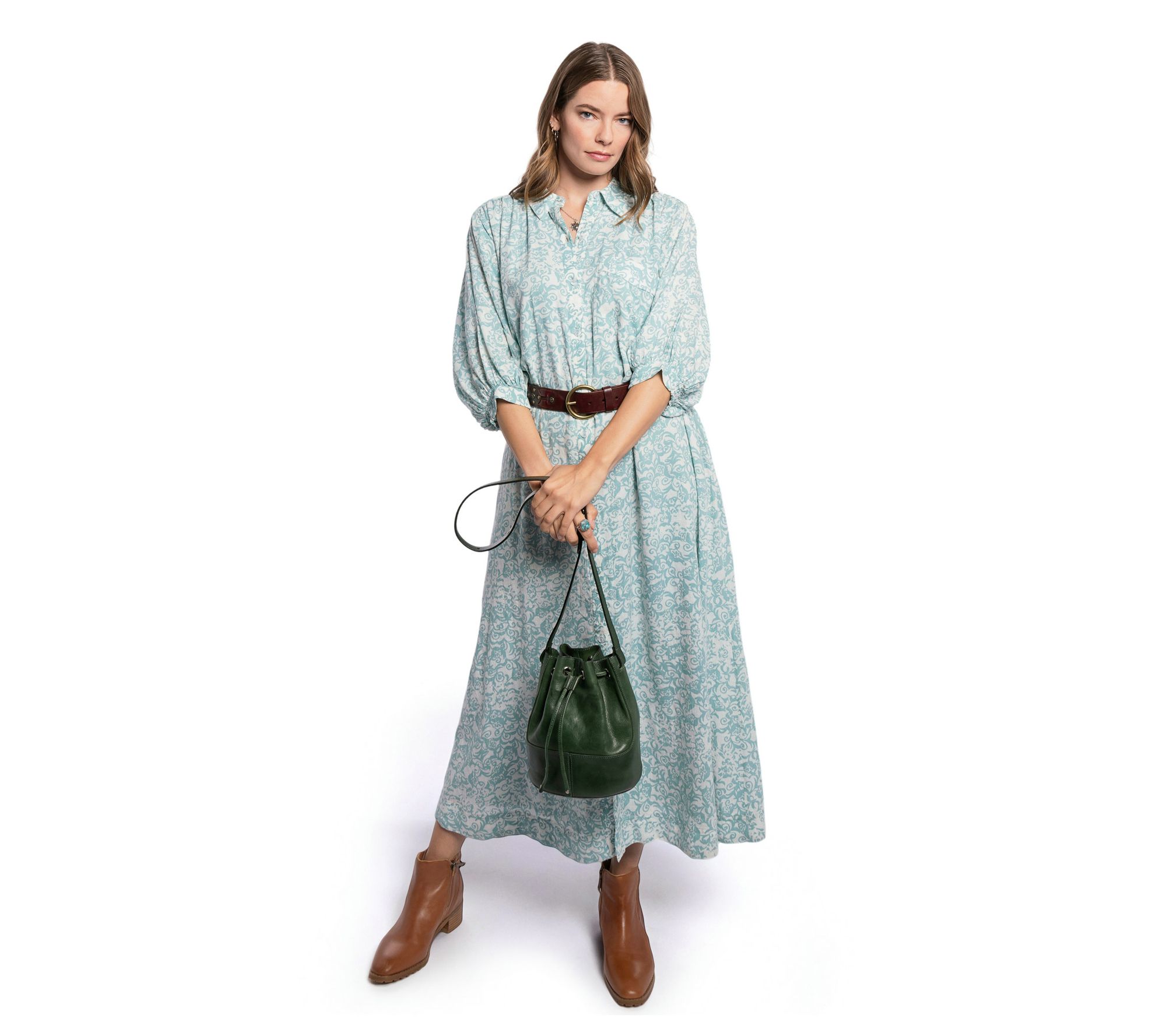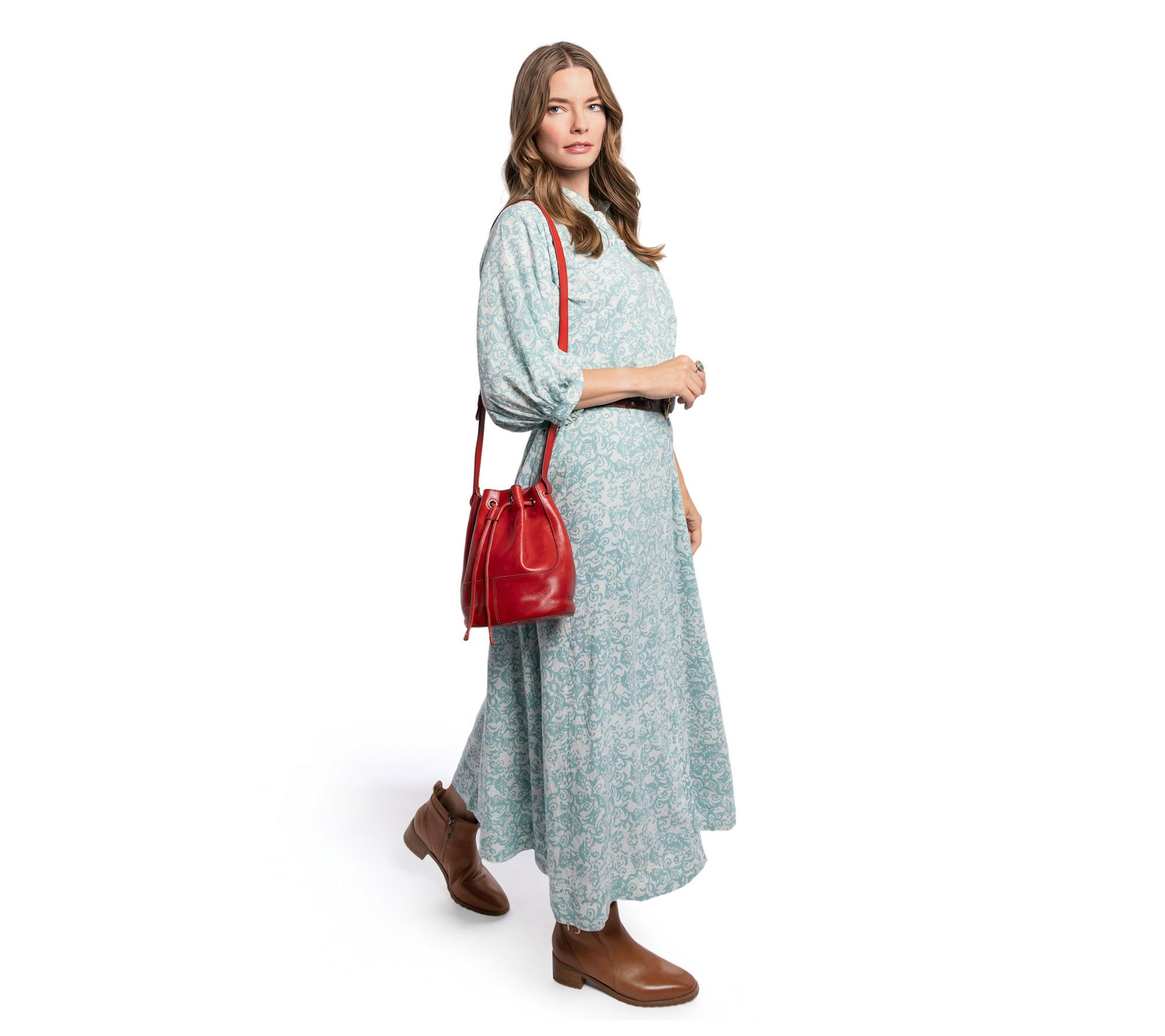 Whether you're catching up with friends at brunch or taking care of business on the go, this leather bucket bag adapts to your day with effortless sophistication. Its convertible strap lets you wear it as a shoulder bag or crossbody, while the drawstring closure keeps everything secure and accessible. From Old Trend.