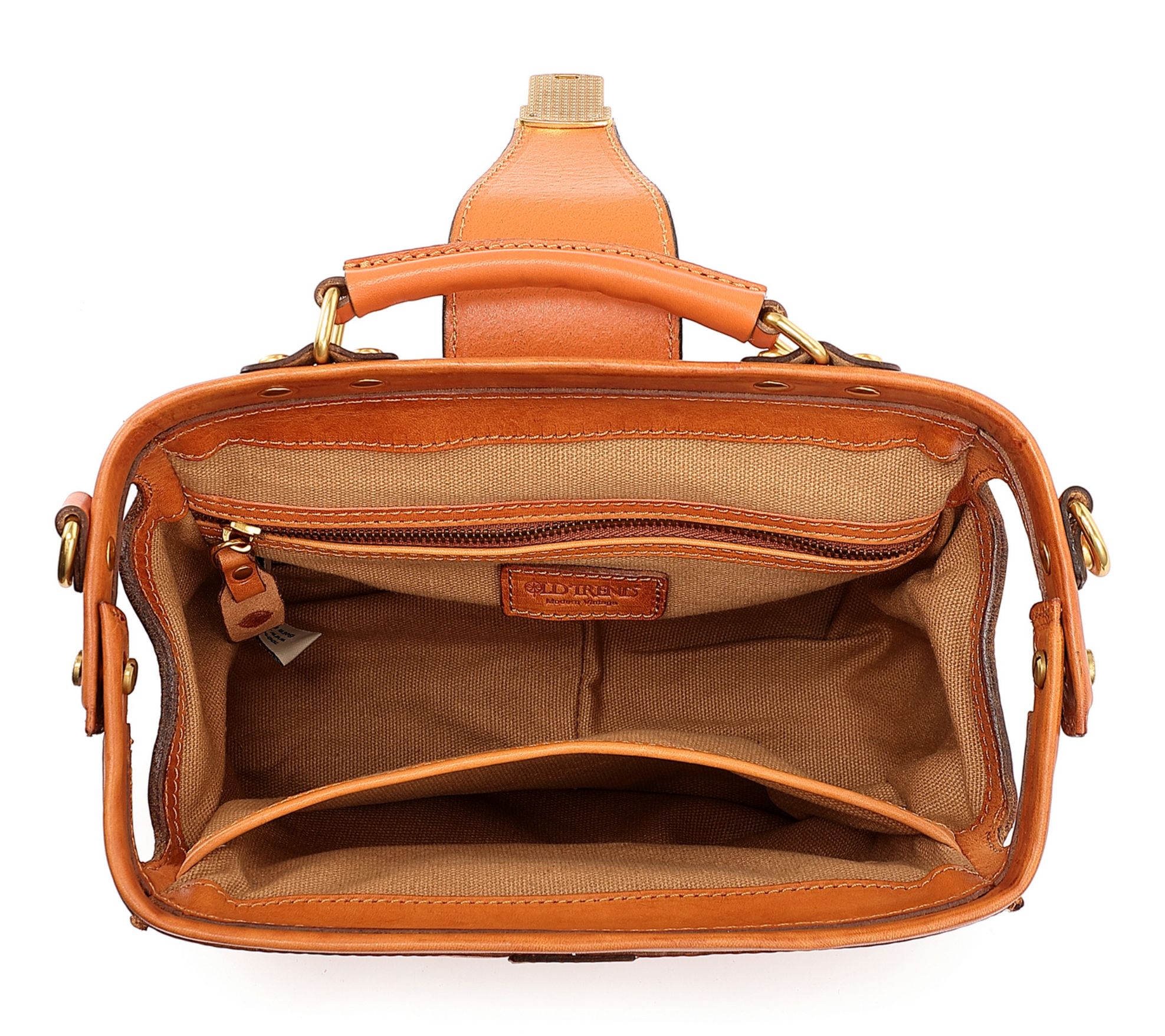 Interior zip pocket and slip pocket; coated cotton lining